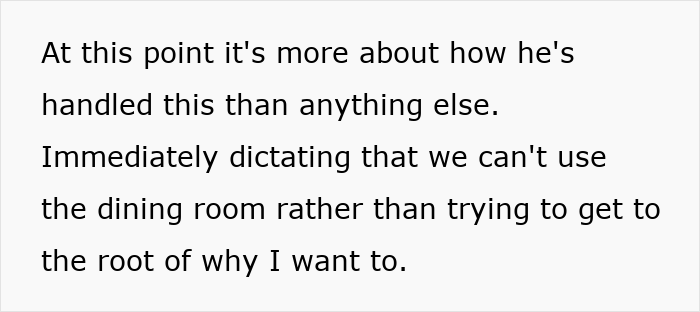 Furthermore, experts at Wren Kitchens note that eating at a table “promotes mindfulness” and can even help with fussy eating. Ironically, the very thing her husband uses as an excuse is something that a structured family mealtime could potentially improve. The husband’s refusal to use the dining room is a major obstacle, as it prevents the family from reaping these benefits.