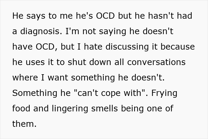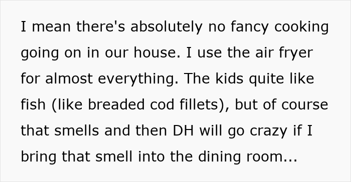 To top it off, the husband is an incredibly fussy eater and he kicks up a fuss about the smell of her cooking seeping into the rest of the house