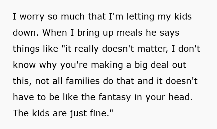 Now, she’s at her wit’s end, feeling completely defeated by a husband who “shuts it down” every time she tries to bring it up. She desperately wants the simple pleasure of a nice family meal, even just on the weekends, but she’s trapped by a house layout, a difficult husband, and a culture of disconnection that she feels powerless to change.