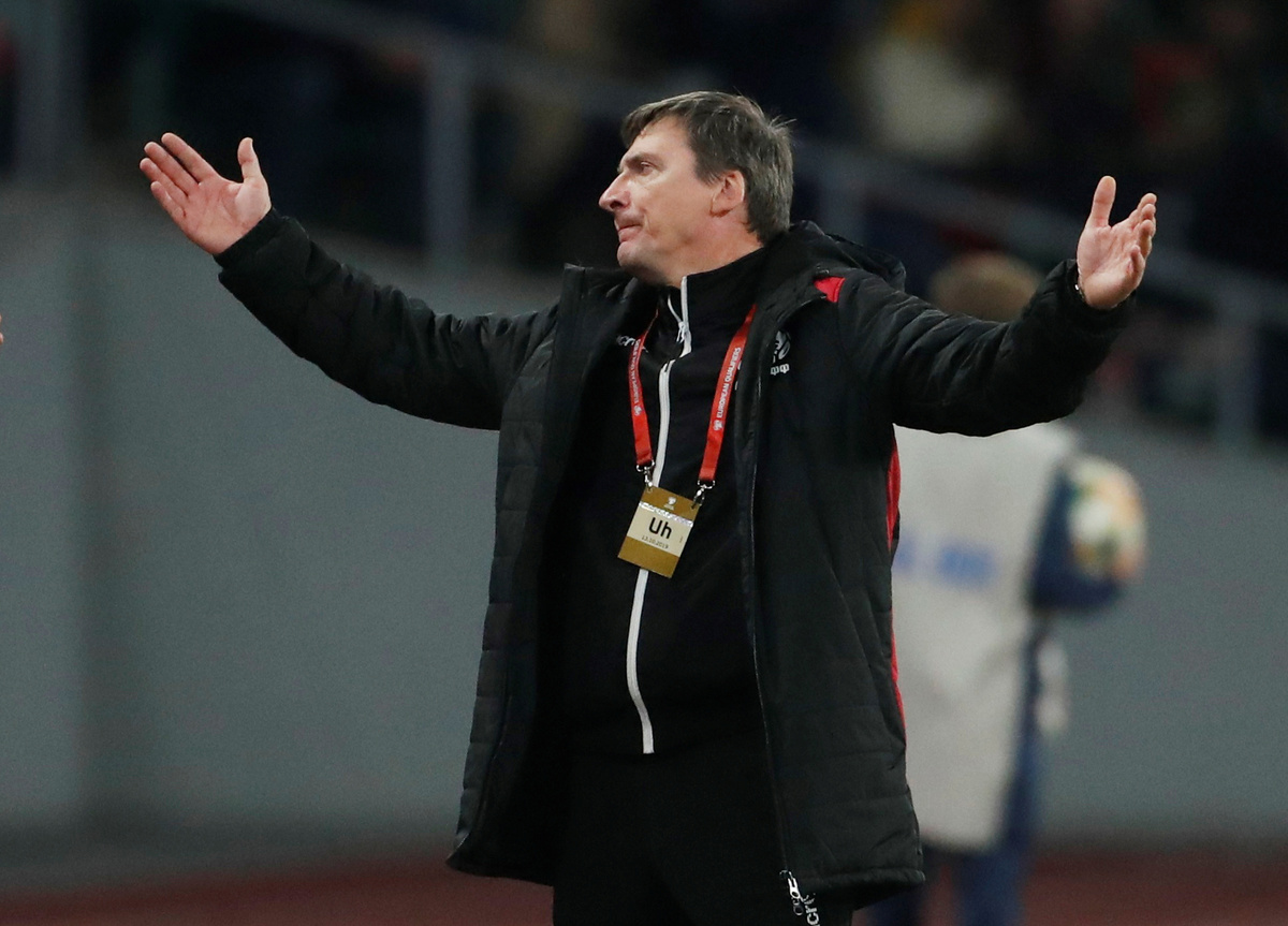 Soccer Football - Euro 2020 Qualifier - Group C - Belarus v Netherlands - Dinamo Stadion, Minsk, Belarus - October 13, 2019 Belarus coach Mikhail Markhel reacts REUTERS/Vasily FedosenkoSoccer Football - Euro 2020 Qualifier - Group C - Belarus v Netherlands - Dinamo Stadion, Minsk, Belarus - October 13, 2019 Netherlands' Georginio Wijnaldum in action REUTERS/Vasily FedosenkoSoccer Football - Euro 2020 Qualifier - Group C - Belarus v Netherlands - Dinamo Stadion, Minsk, Belarus - October 13, 2019 Netherlands' Steven Bergwijn in action with Belarus's Ivan Bakhar REUTERS/Vasily FedosenkoSoccer Football - Euro 2020 Qualifier - Group C - Belarus v Netherlands - Dinamo Stadion, Minsk, Belarus - October 13, 2019 Netherlands' Daley Blind in action REUTERS/Vasily FedosenkoSoccer Football - Euro 2020 Qualifier - Group C - Belarus v Netherlands - Dinamo Stadion, Minsk, Belarus - October 13, 2019 Netherlands' Steven Bergwijn in action REUTERS/Vasily FedosenkoSoccer Football - Euro 2020 Qualifier - Group C - Belarus v Netherlands - Dinamo Stadion, Minsk, Belarus - October 13, 2019 Netherlands' Donny van de Beek in action with Belarus's Ivan Bakhar REUTERS/Vasily Fedosenko