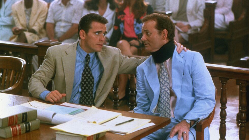 - The opposing attorneys in the rape trial of Sam Lombardo are played by Chicago-area legends Jeff Perry (as the prosecutor) and Bill Murray as strip-mall attorney Ken Bowden. When Sam asks Ken about his neck brace, Ken replies, “This? I don’t have to wear it all the time. There was an insurance guy around here earlier.”