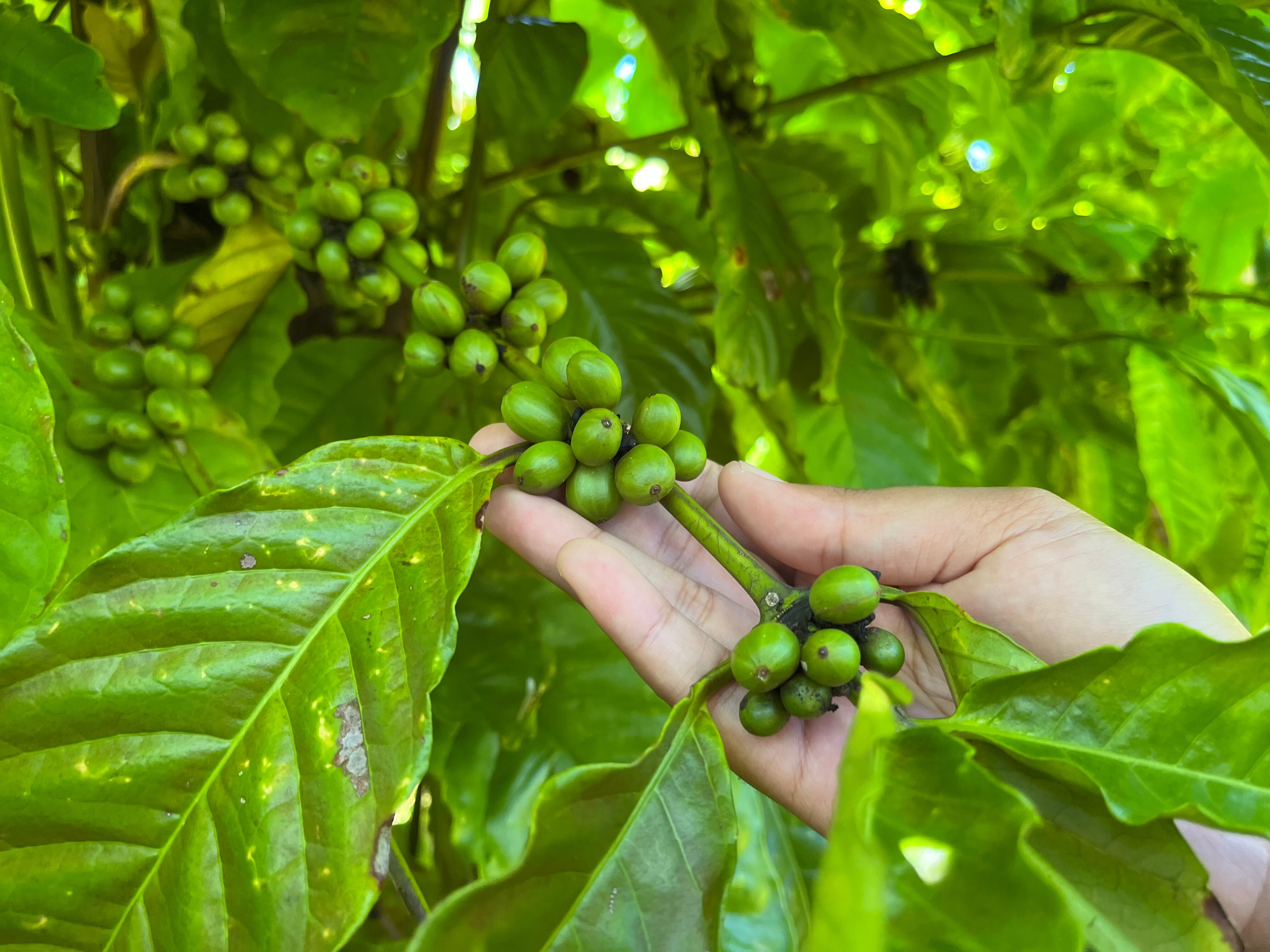 Those cherries turned out to be wild coffee beans — the small, round stone fruit produced by the coffee plant.