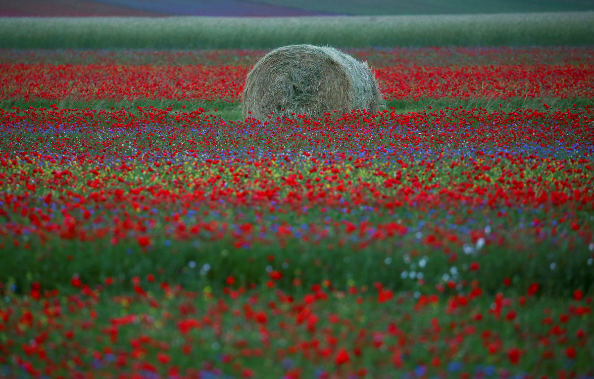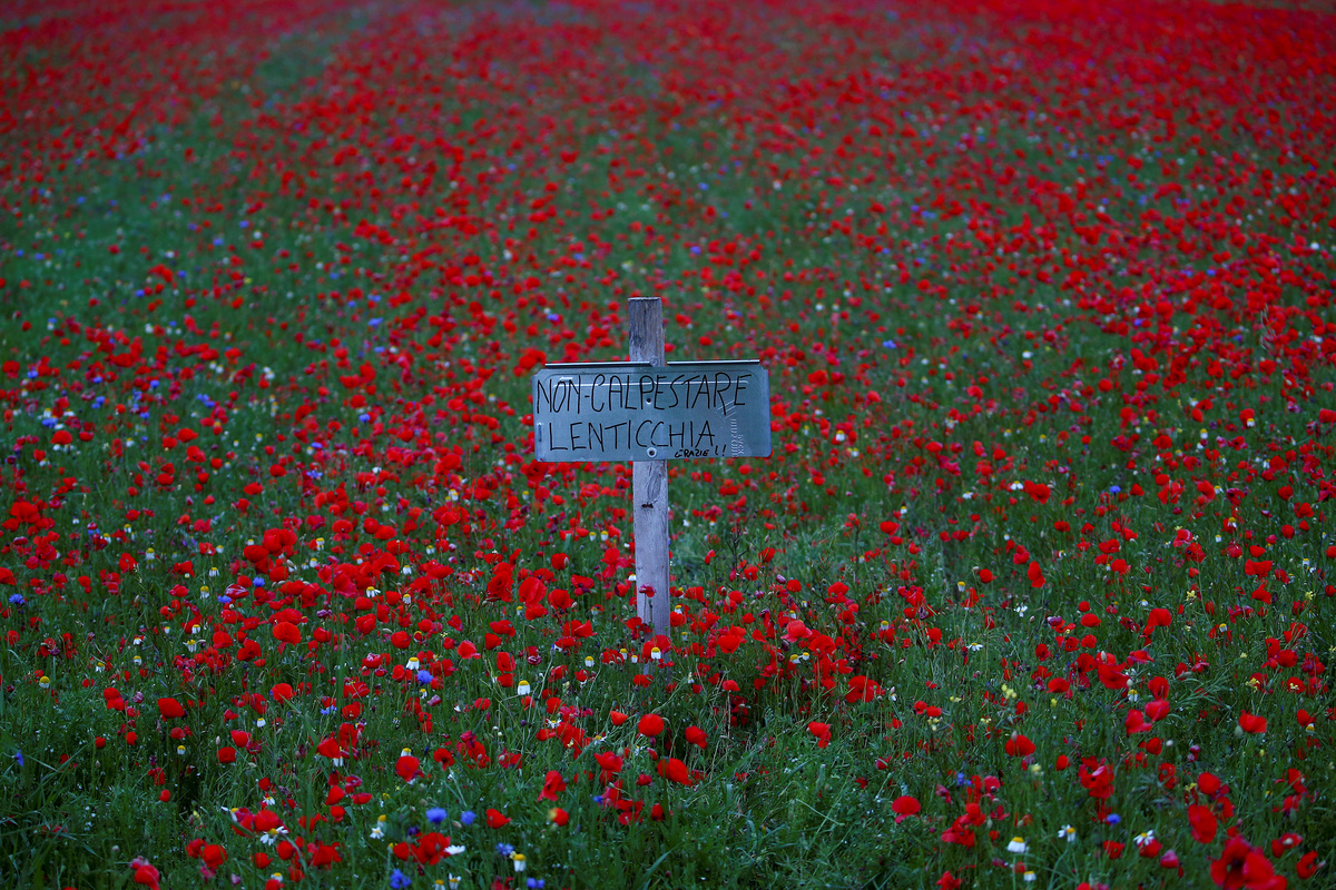 Sharing the land with the region's famed lentils - Castelluccio's small, brown pulses are prized by chefs around the world - poppies, daisies and cornflowers provide a floral carpet that has become an annual tourist attraction.