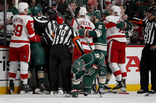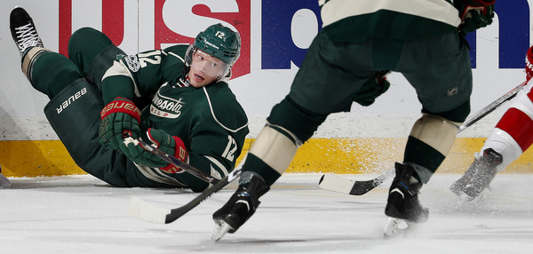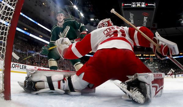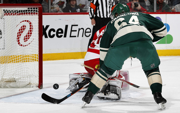 Just 3:59 into the third, Pominville, who has 17 points in the past 12 games, stole a pass from Coreau to set up Parise's first of two games. The Red Wings once again took that 4-2 deficit and made it a one-goal deficit, but Folin and Parise converted by game's end.