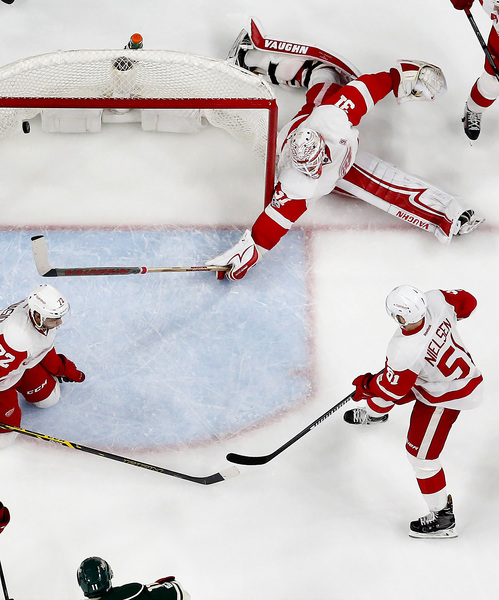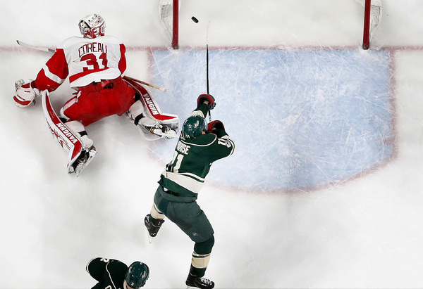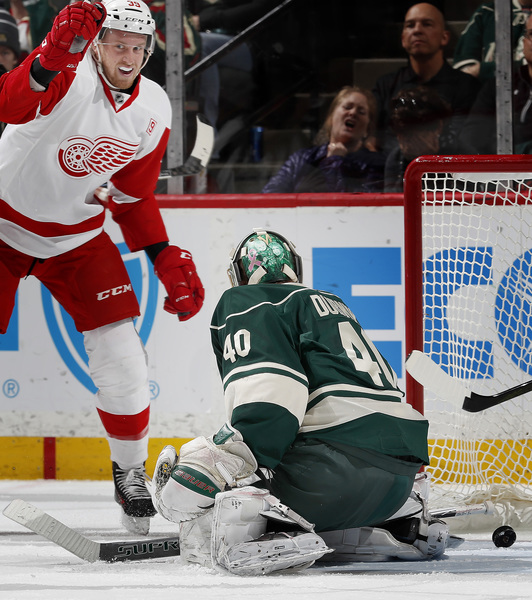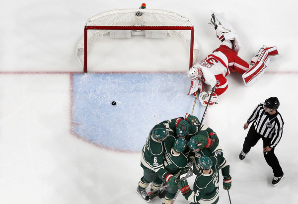 But that much-needed goal again became only a one-goal lead again for Minnesota just 1:25 later when Henrik Zetterberg bunted a rebound past Dubnyk. The goalie had trouble swallowing an odd Xavier Ouellet point shot that skipped on the ice and turned on edge.