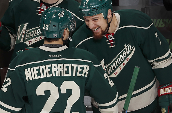 After a faceoff later in the period, Niederreiter scored his eighth goal. He took Ryan Suter's pass after an Erik Haula faceoff win, circled the back of the net all the way to the top of the circles before whipping a shot through traffic that found the back of the net for his eighth point in nine games.