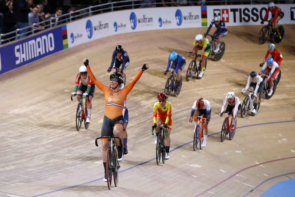Cycling - 2020 UCI Track Cycling World Championships - Women's Scratch Race Final - Berlin, Germany - February 26, 2020. Kirsten Wild of the Netherlands celebrates after winning. REUTERS/Kacper Pempel