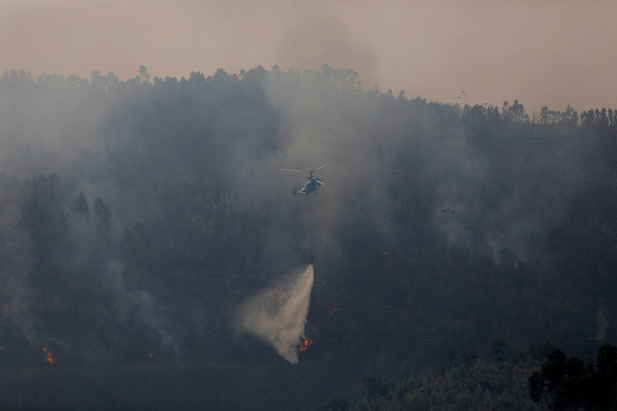 The fire is burning through eucalyptus and pine forests in the hills above the Algarve coast, an area popular with tourists for its hot springs. Two well-known hotels in the village of Monchique were evacuated and closed on Sunday.