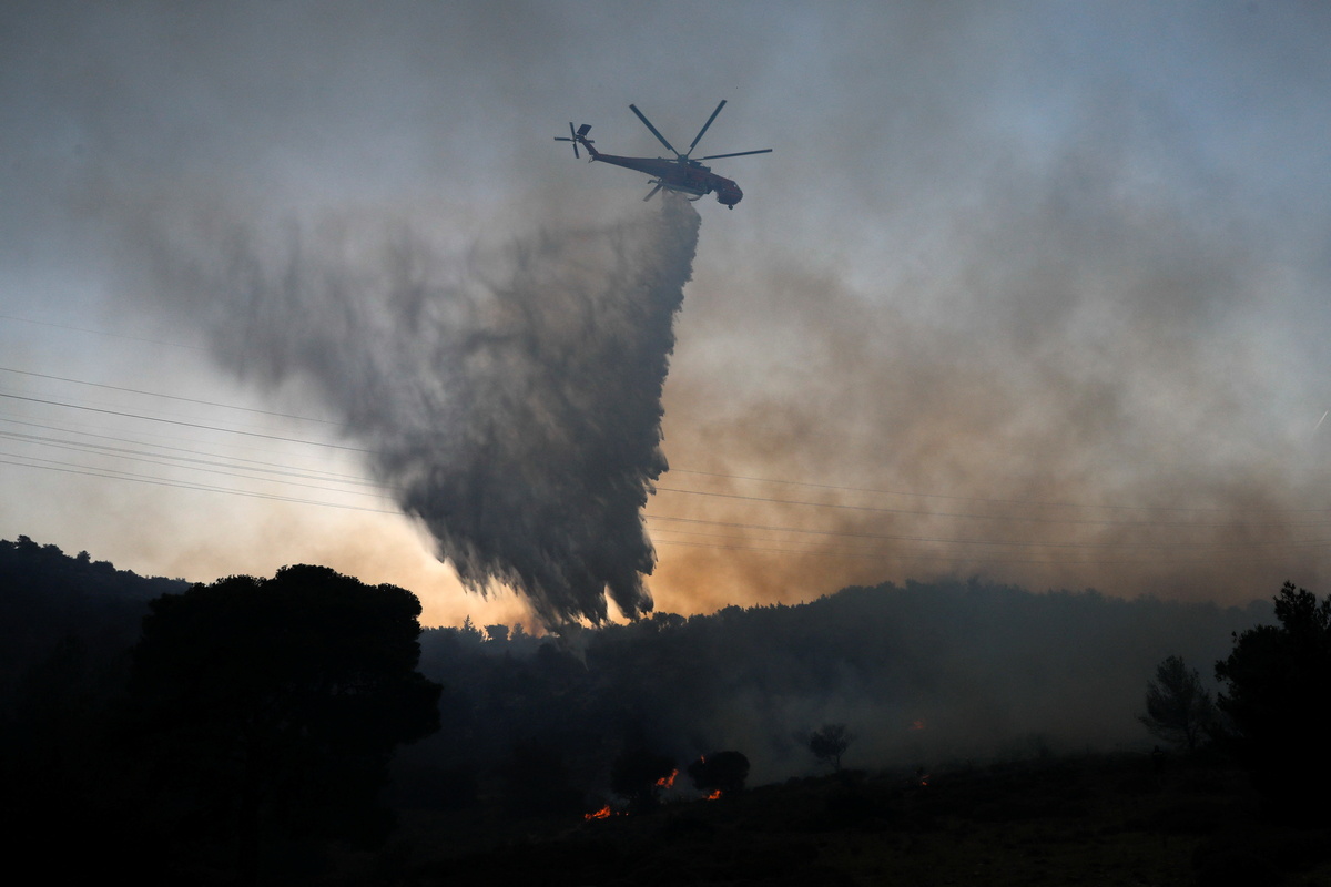 Fanned by strong winds, the blaze quickly spread across the slopes of Mount Hymettus which overlooks the Greek capital, sending thick clouds of smoke over the southern suburbs.