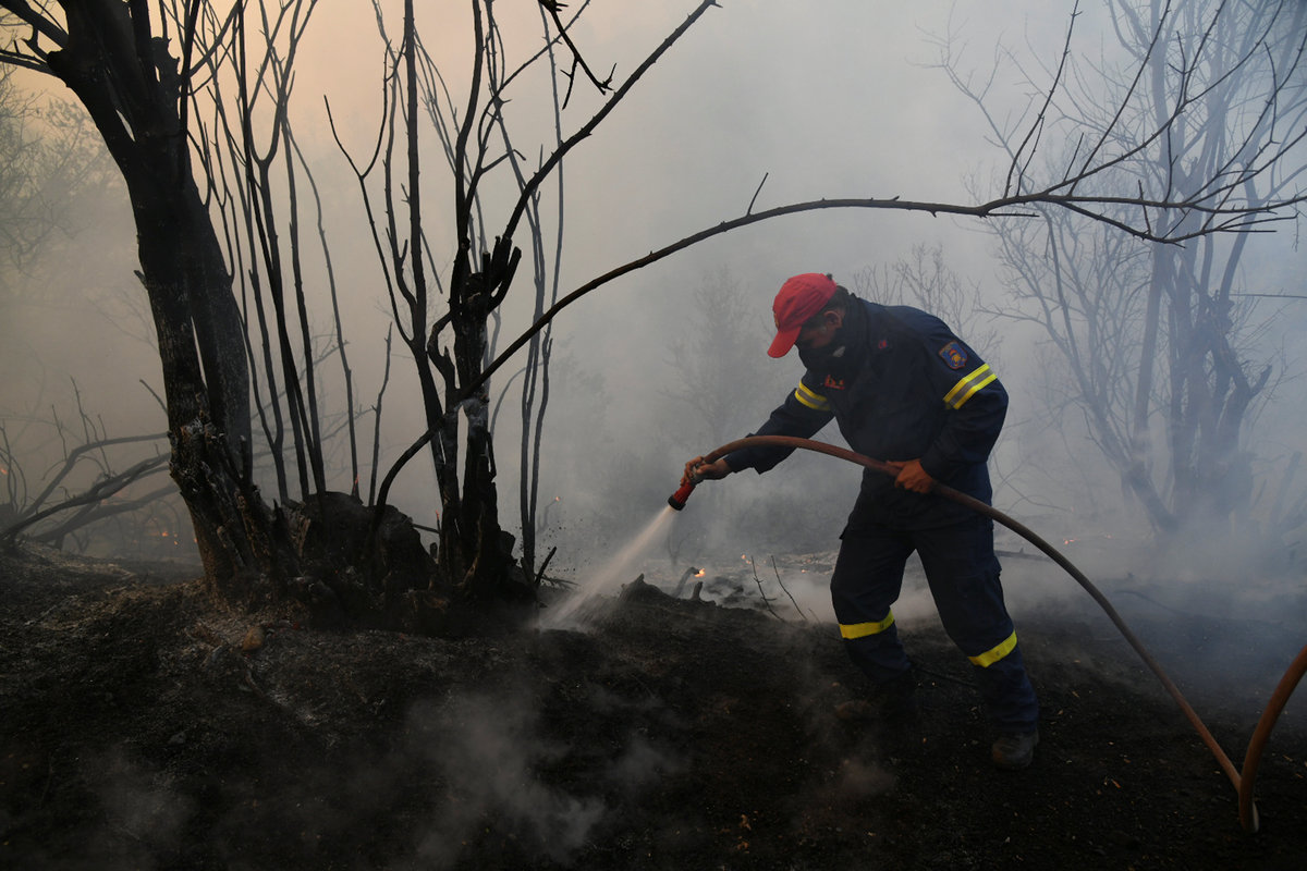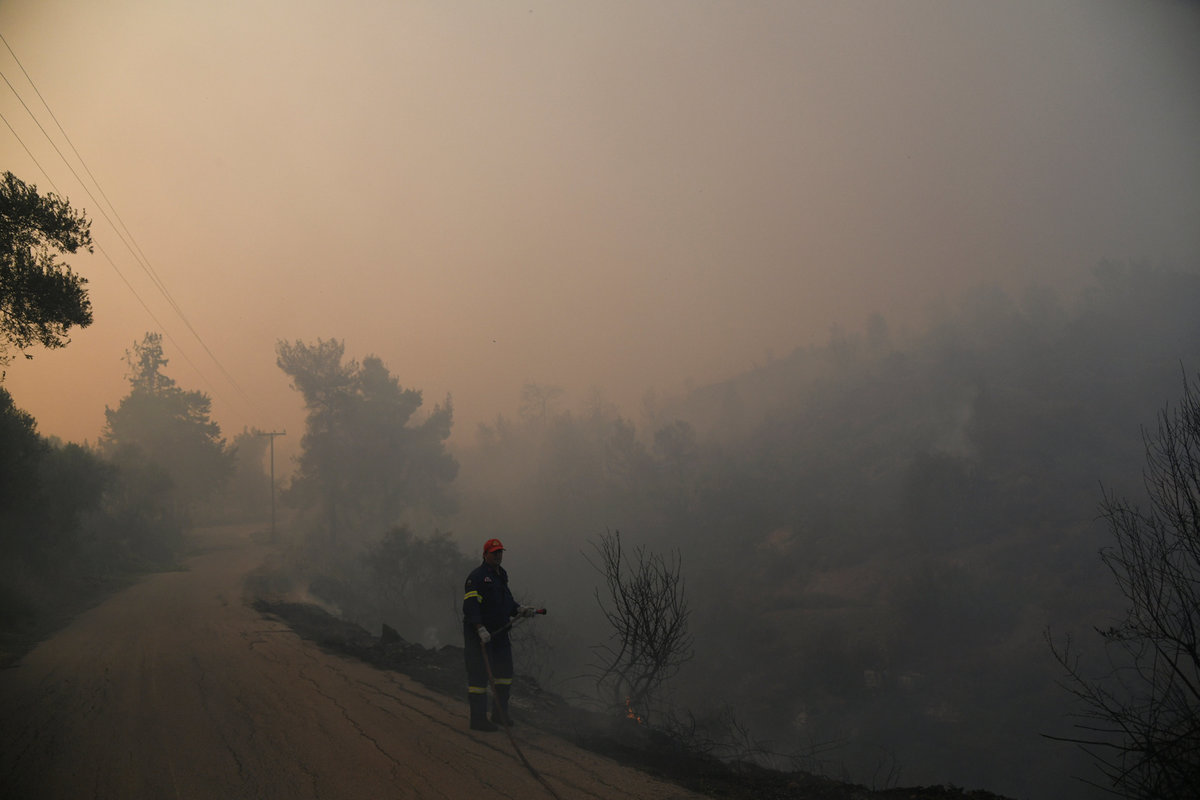 A firefighter throws water through a hose as a wildfire burns near the village of Psahna, in Evia, Greece, August 12, 2018. REUTERS/Michalis KaragiannisThe sun sets under a cloud of smoke caused by a wildfire fanned by strong winds on the island of Evia, in Athens, Greece, August 12, 2018. REUTERS/Yannis Behrakis Firefighters are seen next to a burning tree during a wildfire near the village of Psahna, in Evia, Greece, August 12, 2018. REUTERS/Michalis KaragiannisA firefighter throws water through a hose as a wildfire burns near the village of Psahna, in Evia, Greece, August 12, 2018. REUTERS/Michalis KaragiannisFirefighters throw water through a hose as a wildfire burns near the village of Psahna, in Evia, Greece, August 12, 2018. REUTERS/Michalis KaragiannisThe sun sets over Athens and its ancient Acropolis (L) as a thick cloud of smoke levitates over the Greek capital, caused by a forest fire, fanned by strong winds on the island of Evia, in Athens, Greece, August 12, 2018. REUTERS/Yannis Behrakis