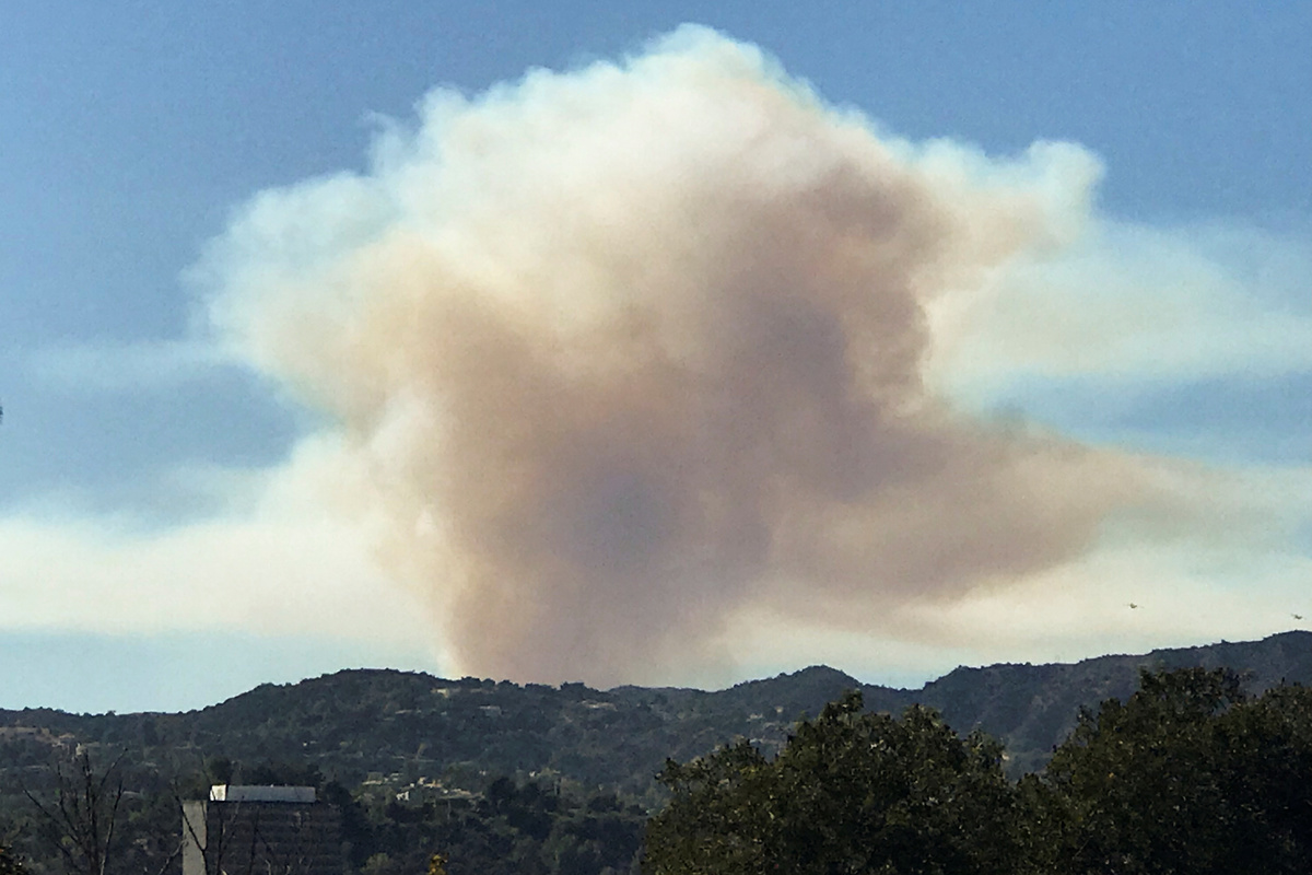 Los Angeles Fire Department spokesman Brian Humphrey said on the broadcast that winds were relatively light, helping to keep the blaze in check by reducing the amount of burning embers blown into the air.