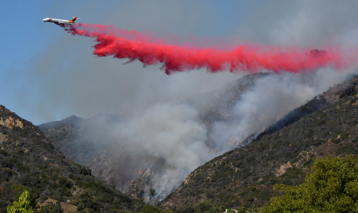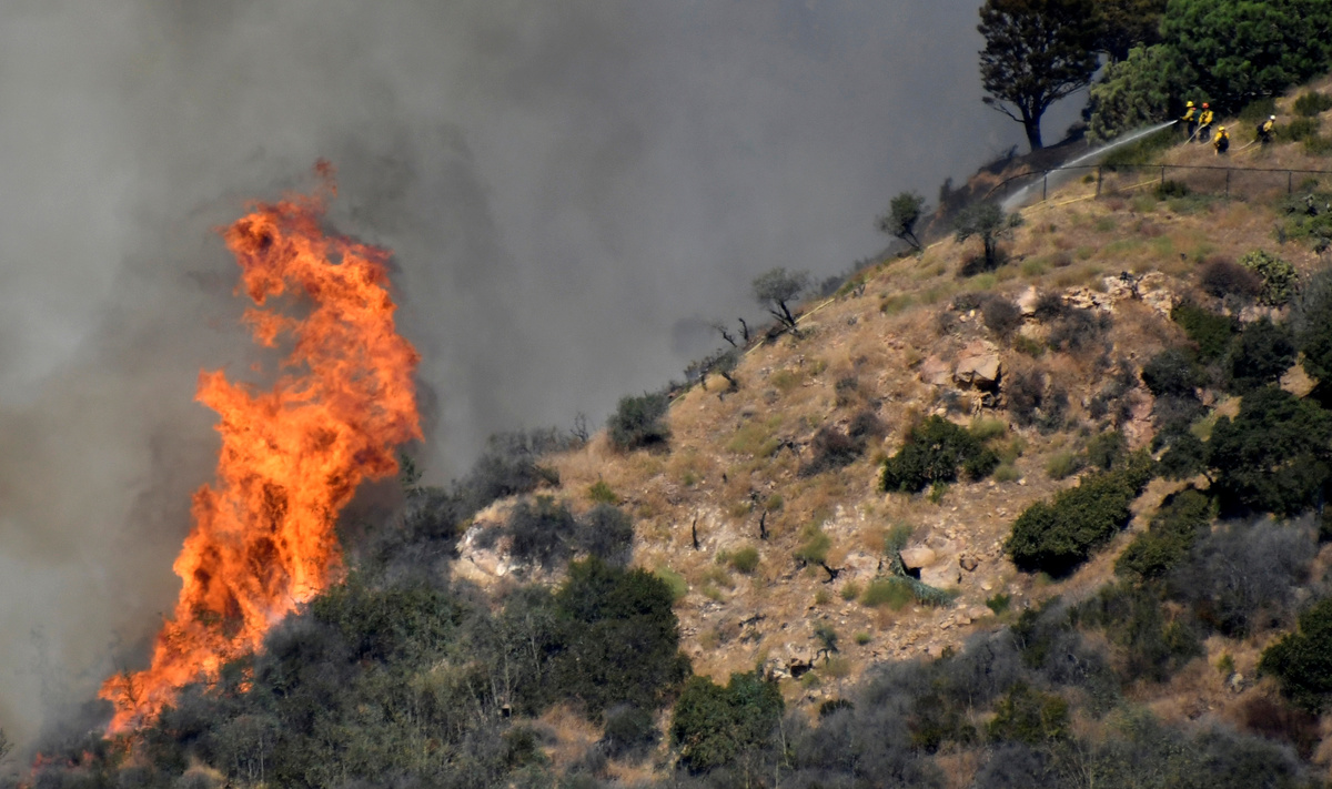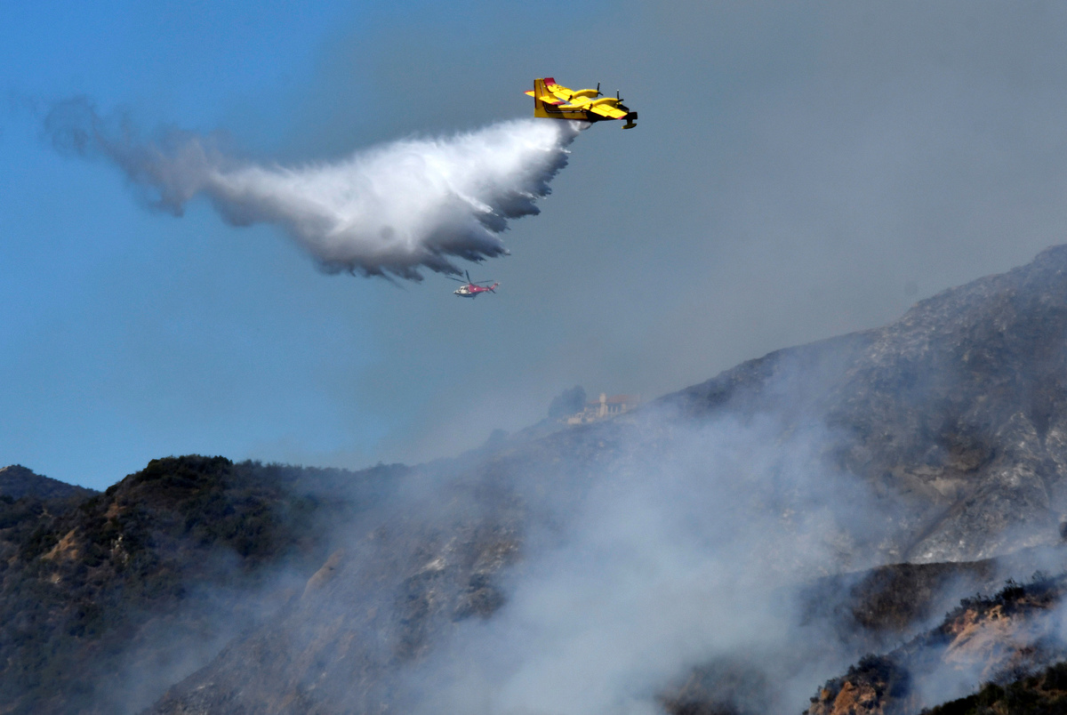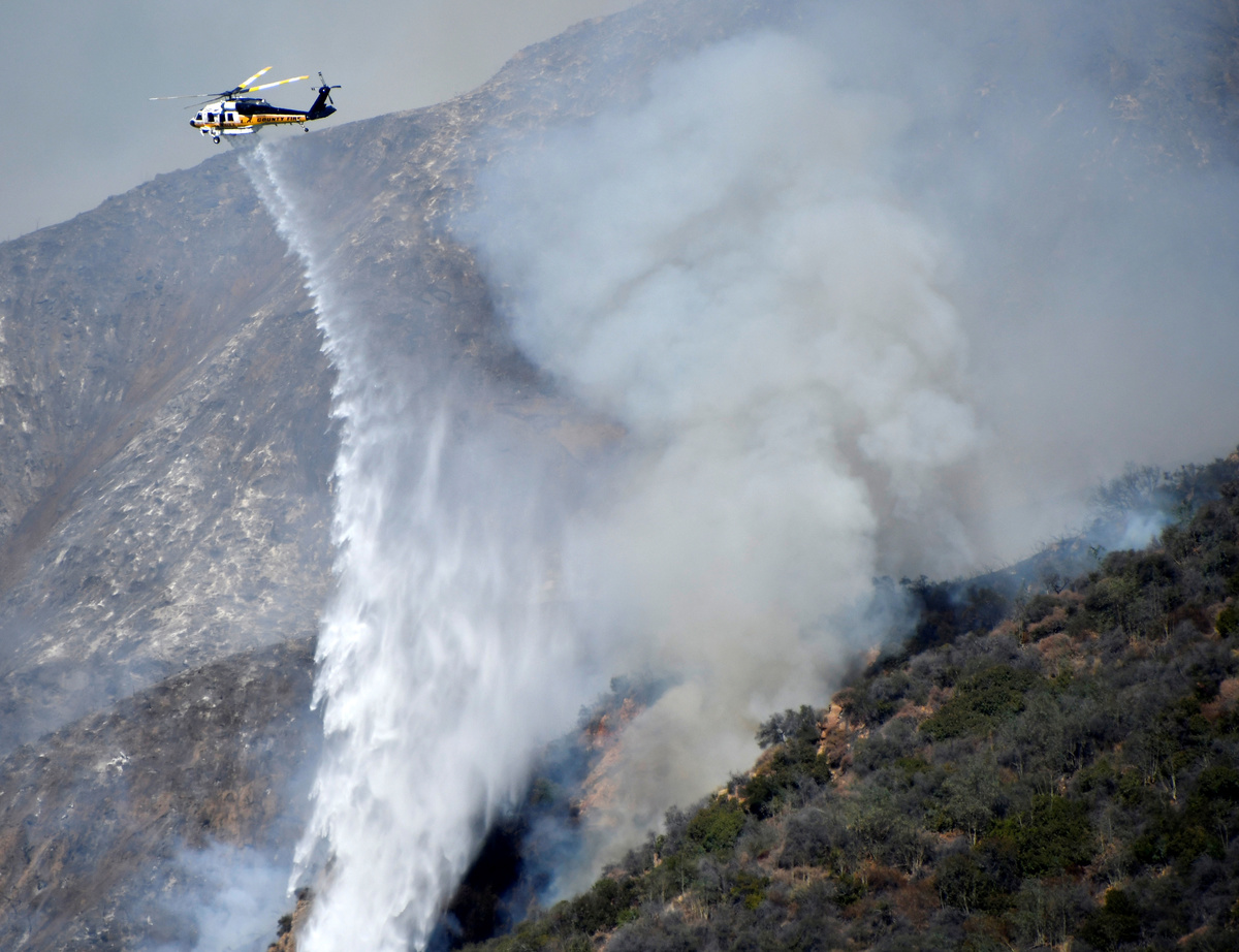 Large, repeated water drops from helicopters kept the fire from advancing into a neighborhood closest to the flames, and the fire appeared to have been largely subdued within an hour, with no injuries or serious property damage reported.