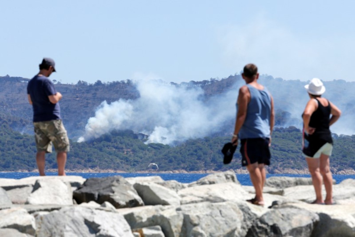 One blaze that erupted late on Monday, near the Croix Valmer resort and the yacht-filled marinas of Saint-Tropez, sent clouds of thick smoke into azure skies within view of busy beaches.