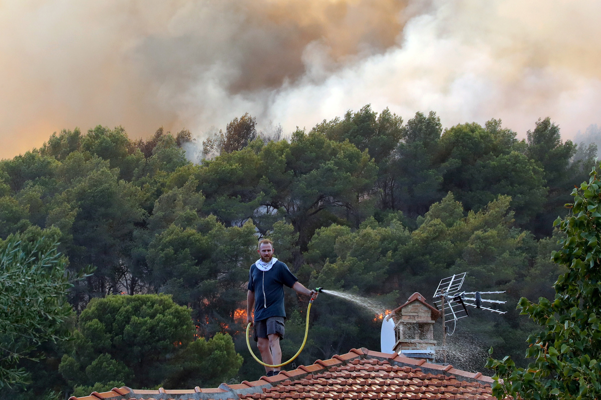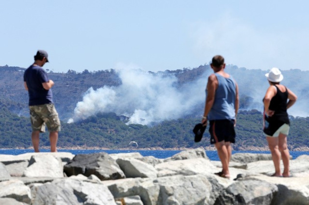 Not far west of the yacht-filled marinas of Saint-Tropez resort, 10,000 people were evacuated - 3,000 of them from campsites - as a fast-encroaching fire ripped through the hills of La Lodes les Manures, the Lavabo and Bromes.