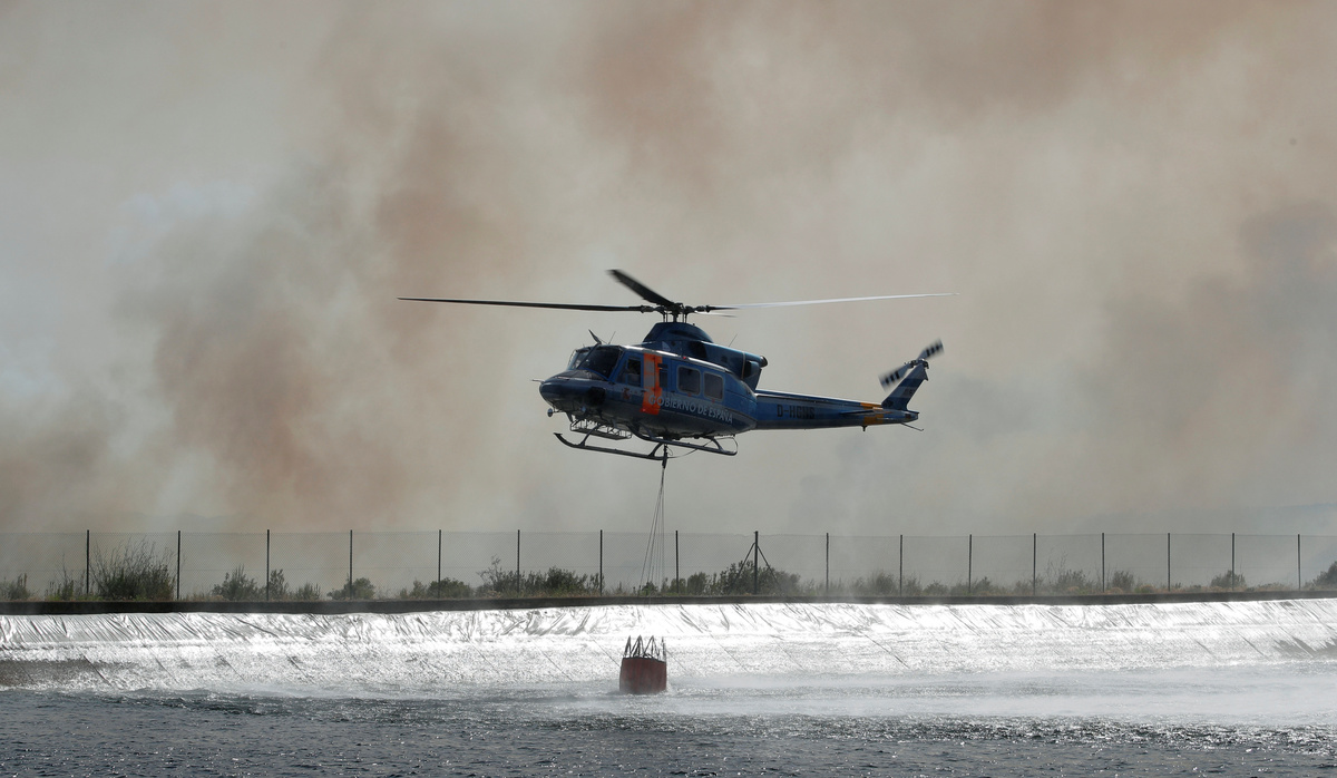 Helicopters dumped water on the fires blazing across hills some 80 km (50 miles) inland from the coastal town of Tarragona. There were no reports of any casualties.