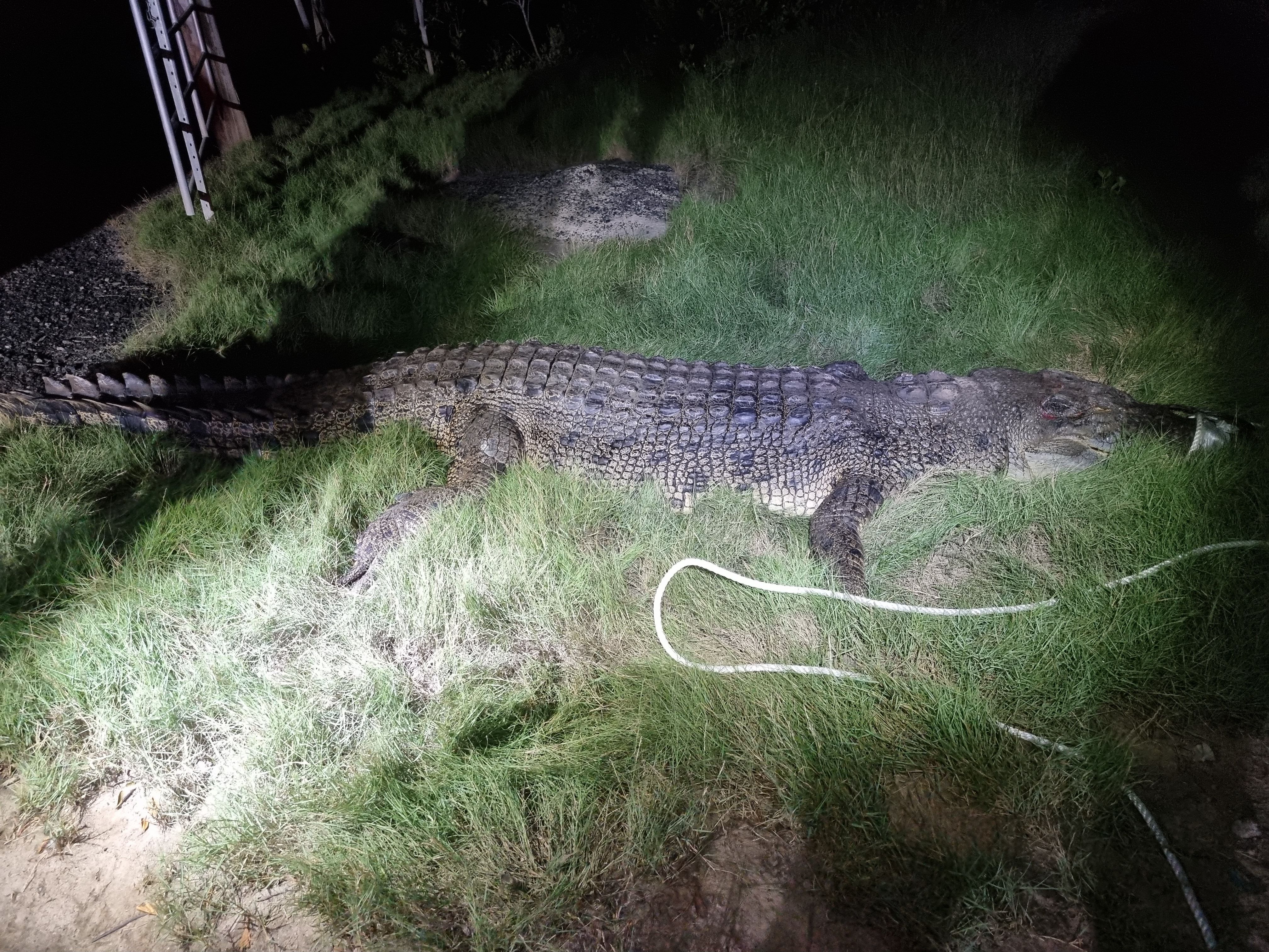 On Tuesday, a fisherman alerted the department to a large croc aggressively stalking him on the banks of Reliance Creek.