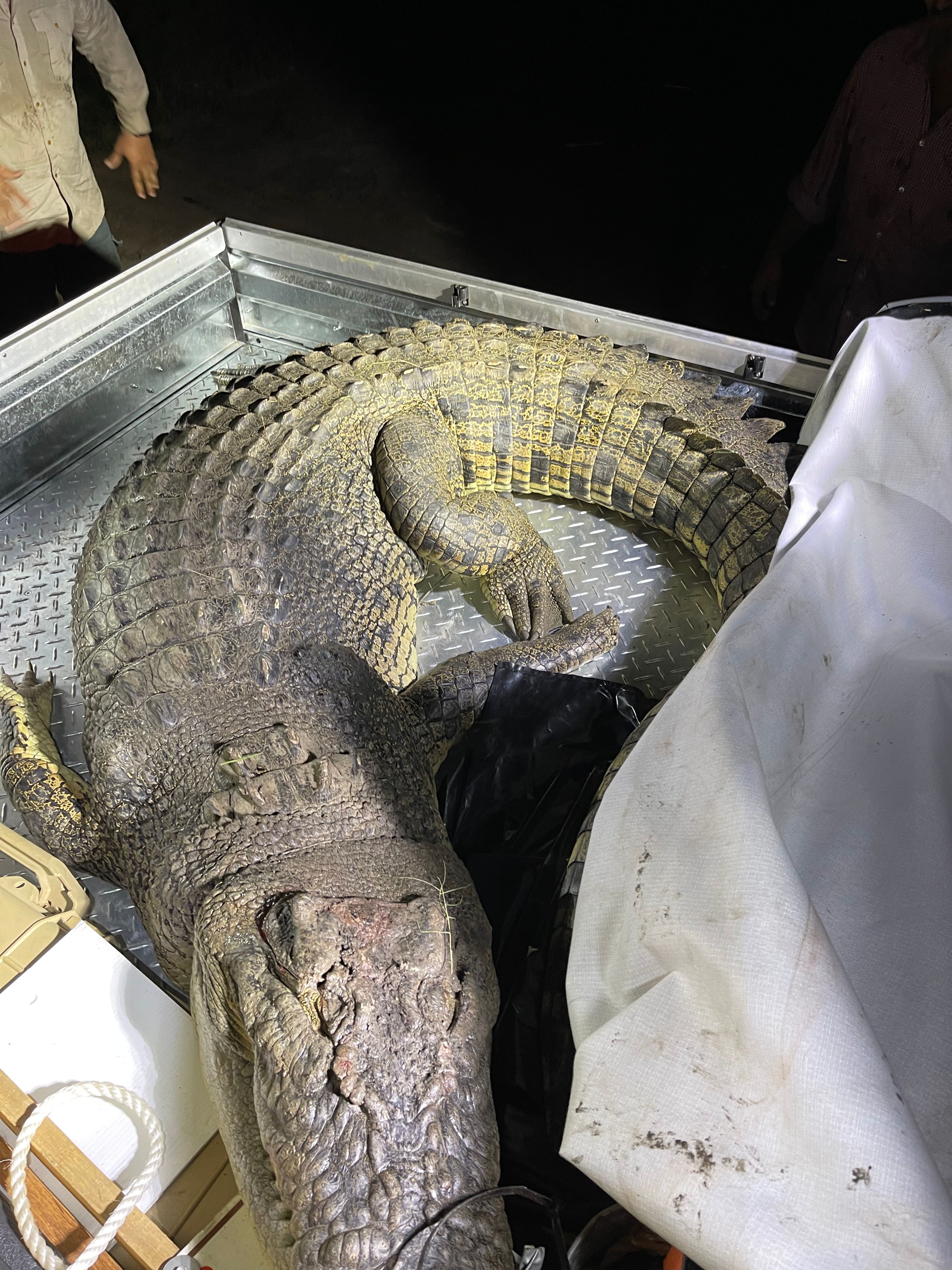 Days later, a fisherman fought off the same crocodile with rocks at a local creek.