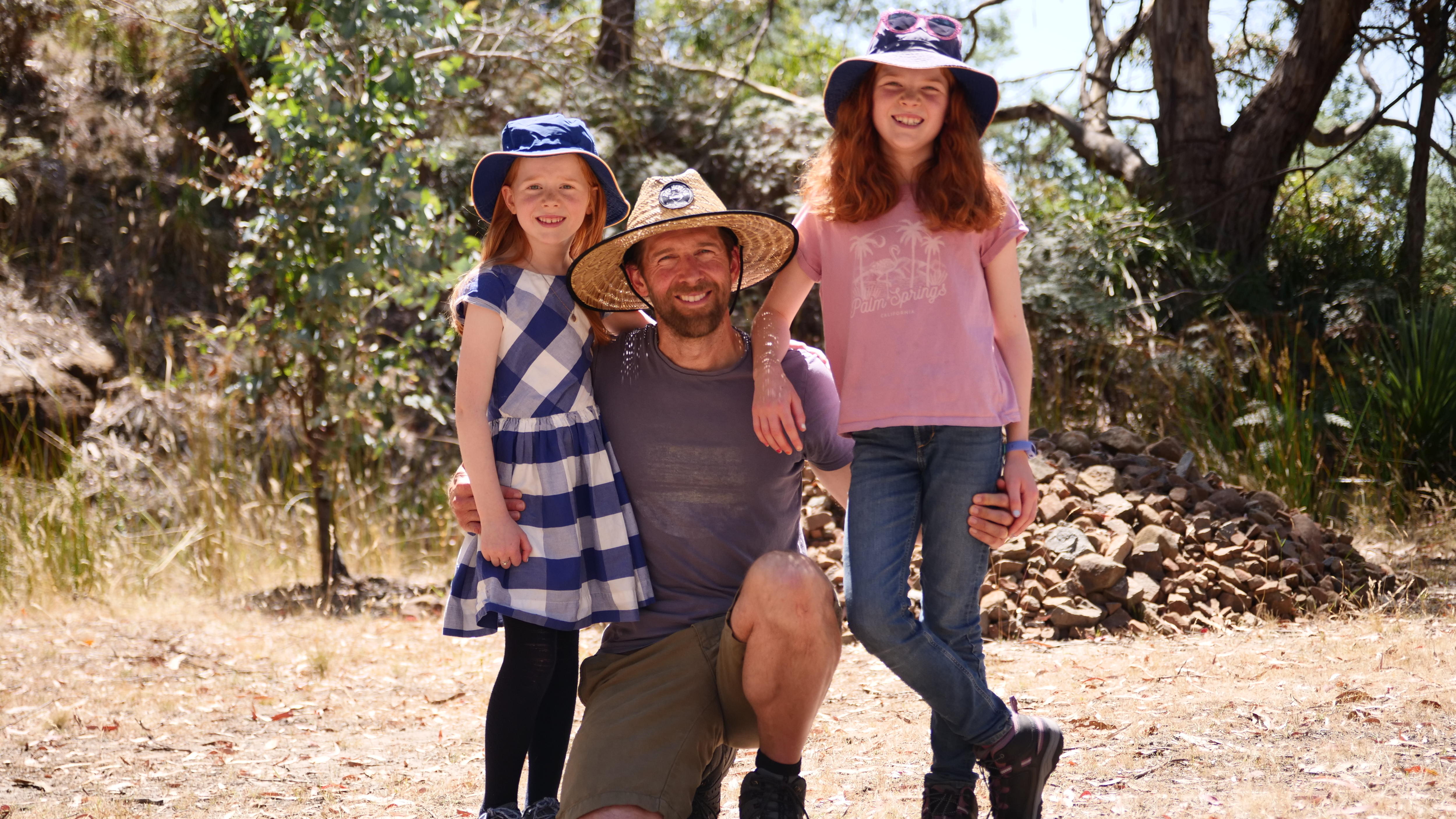 Andrew Marshall and his girls Paige and Adia are used to spotting wallabies and the odd echidna on their Tinderbox property, south of Hobart.