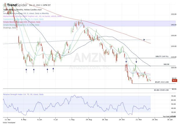 That’s not to say that Amazon stock will necessarily make new lows, but that also doesn’t change the fact that there is no uptrend to be found.