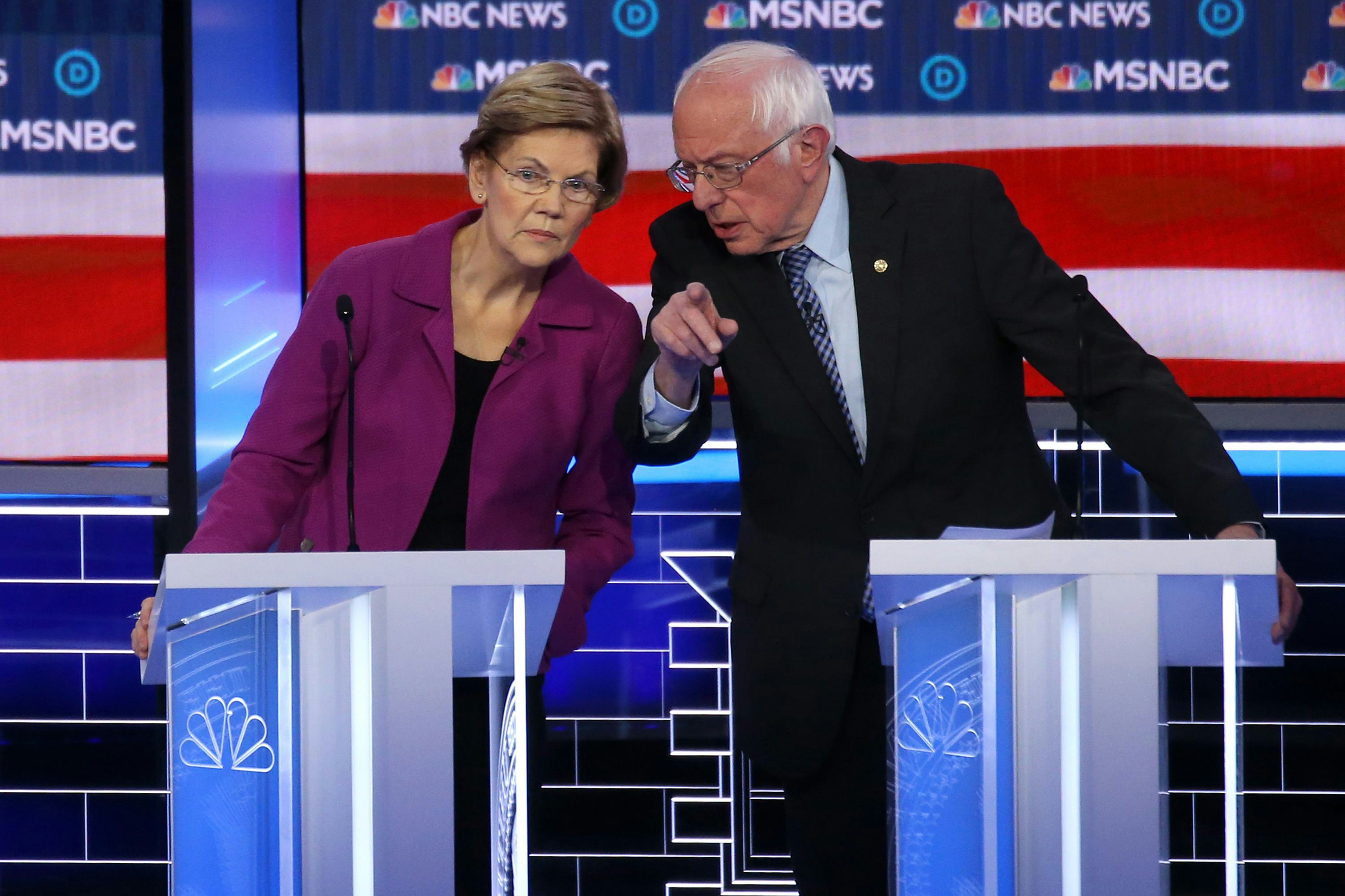 A large portion of the credit for furthering the national conversation on student debt forgiveness can be attributed to former presidential candidates Bernie Sanders and Elizabeth Warren. Both senators made some level of forgiveness foundational to their presidential campaigns; in Sanders's case, the forgiveness was universal, while Warren called for a progressive system with a cap for the highest earners.