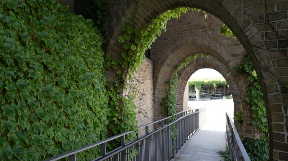 A ramp passes through a set of brick arches at Oak Park Village Hall. (Owen Ziliak/Sun-Times, Owen Ziliak/Sun-Times)