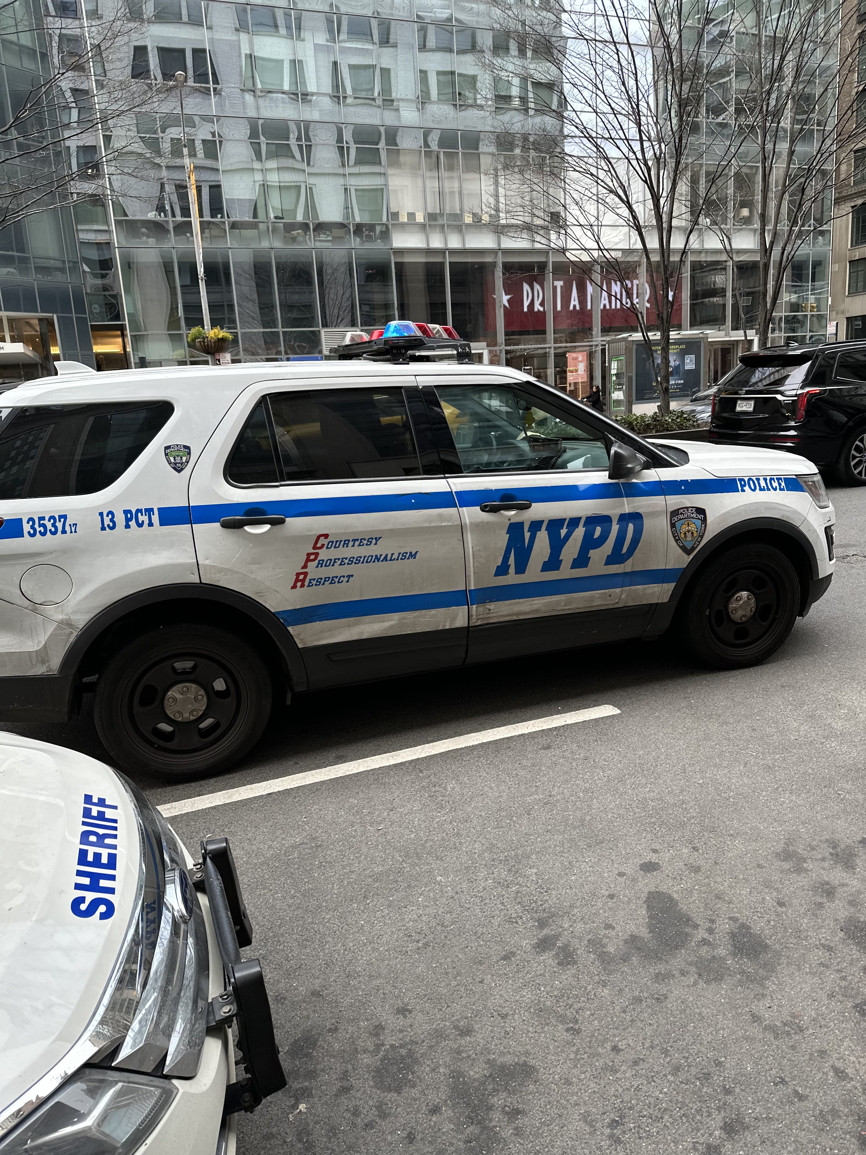 A photo taken by Levi and posted on Newcomer's site shows the New York Police Department's vehicle outside the bank.