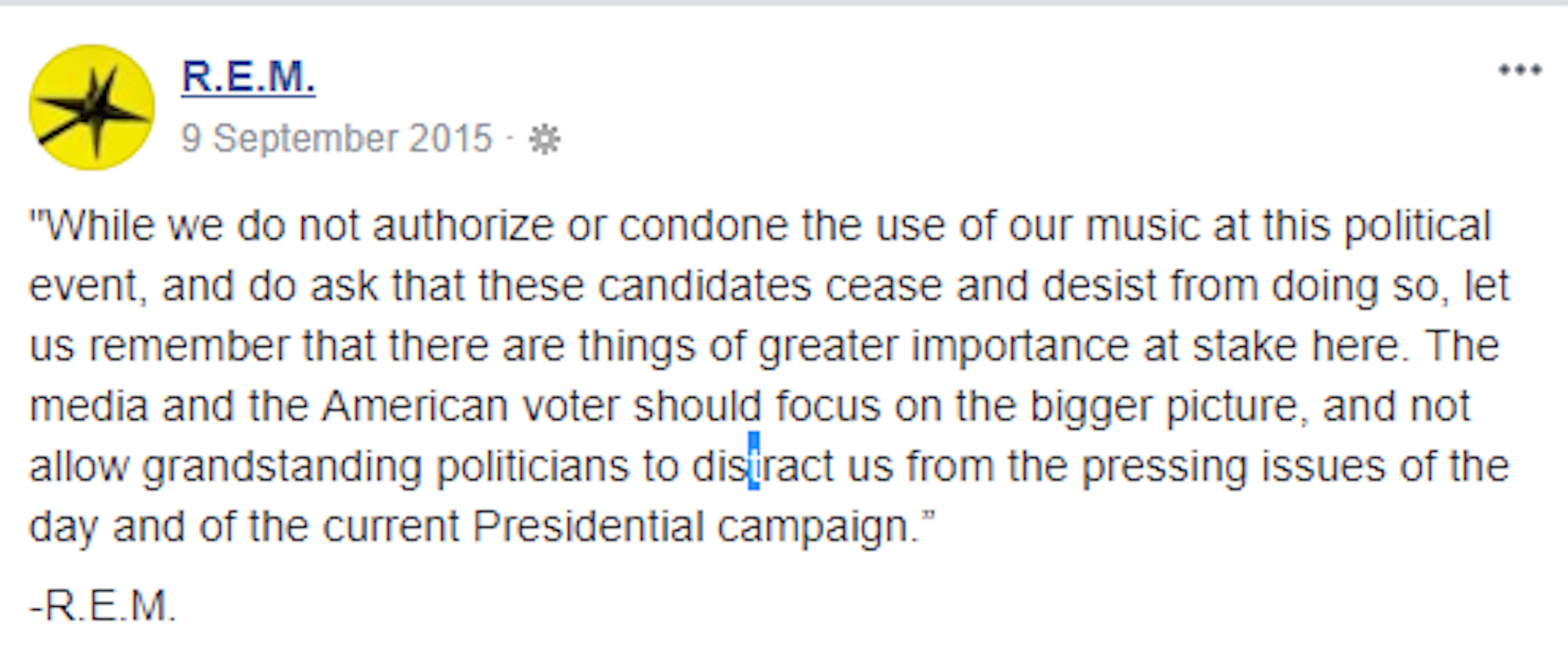 On its Facebook page, the band posted a clear statement.