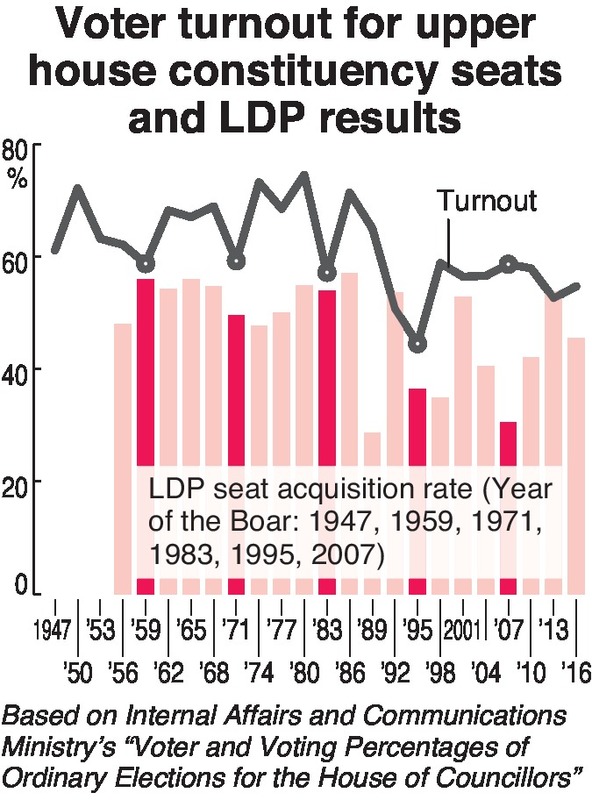 However, some observers also see that the LDP struggles in any upper house election held in the Year of Boar, regardless of turnout.