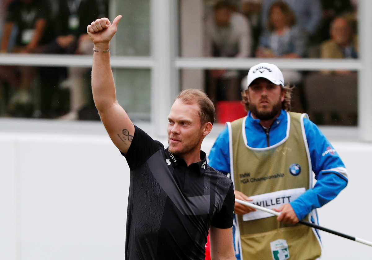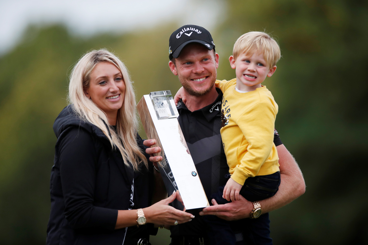 Golf - European Tour - BMW PGA Championship - Wentworth Golf Club, Virginia Water, Britain - September 22, 2019 England's Danny Willett celebrates winning the BMW PGA Championship Action Images via Reuters/Paul ChildsGolf - European Tour - BMW PGA Championship - Wentworth Golf Club, Virginia Water, Britain - September 22, 2019 England's Danny Willett poses with his child, wife Nicole and award after winning the BMW PGA Championship Action Images via Reuters/Paul ChildsGolf - European Tour - BMW PGA Championship - Wentworth Golf Club, Virginia Water, Britain - September 22, 2019 England's Danny Willett wins the BMW PGA Championship and embraces Spain's Jon Rahm Action Images via Reuters/Paul ChildsGolf - European Tour - BMW PGA Championship - Wentworth Golf Club, Virginia Water, Britain - September 22, 2019 England's Danny Willett in action during the final round Action Images via Reuters/Paul ChildsGolf - European Tour - BMW PGA Championship - Wentworth Golf Club, Virginia Water, Britain - September 22, 2019 England's Danny Willett in action during the final round Action Images via Reuters/Paul ChildsGolf - European Tour - BMW PGA Championship - Wentworth Golf Club, Virginia Water, Britain - September 22, 2019 England's Danny Willett and Spain's Jon Rahm during the final round Action Images via Reuters/Paul Childs