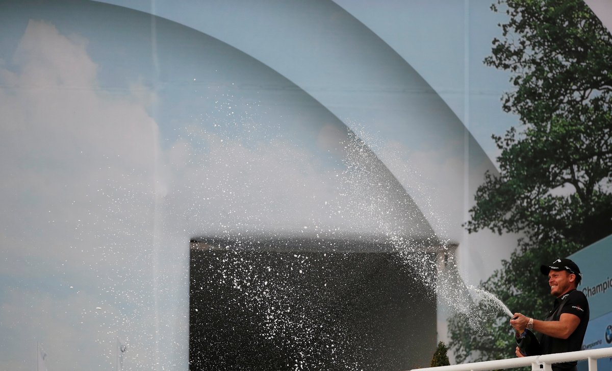 Golf - European Tour - BMW PGA Championship - Wentworth Golf Club, Virginia Water, Britain - September 22, 2019 England's Danny Willett celebrates on the podium with sparkling wine after winning the BMW PGA Championship Action Images via Reuters/Paul Childs