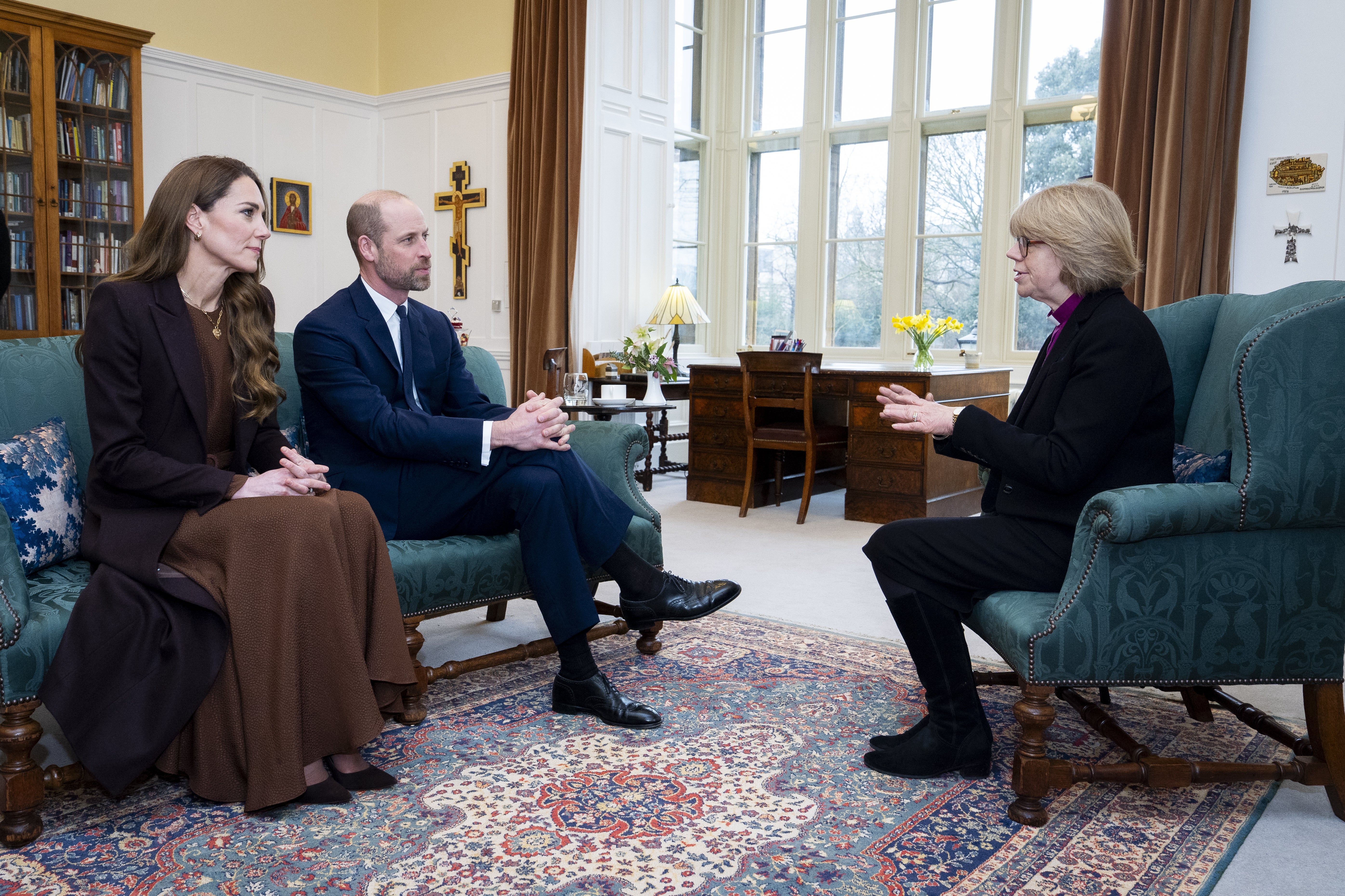 William and Kate were greeted by Dame Sarah Mullally on the steps of Lambeth Palace and later posed for a photo in the Archbishop’s study before sitting down for informal talks.