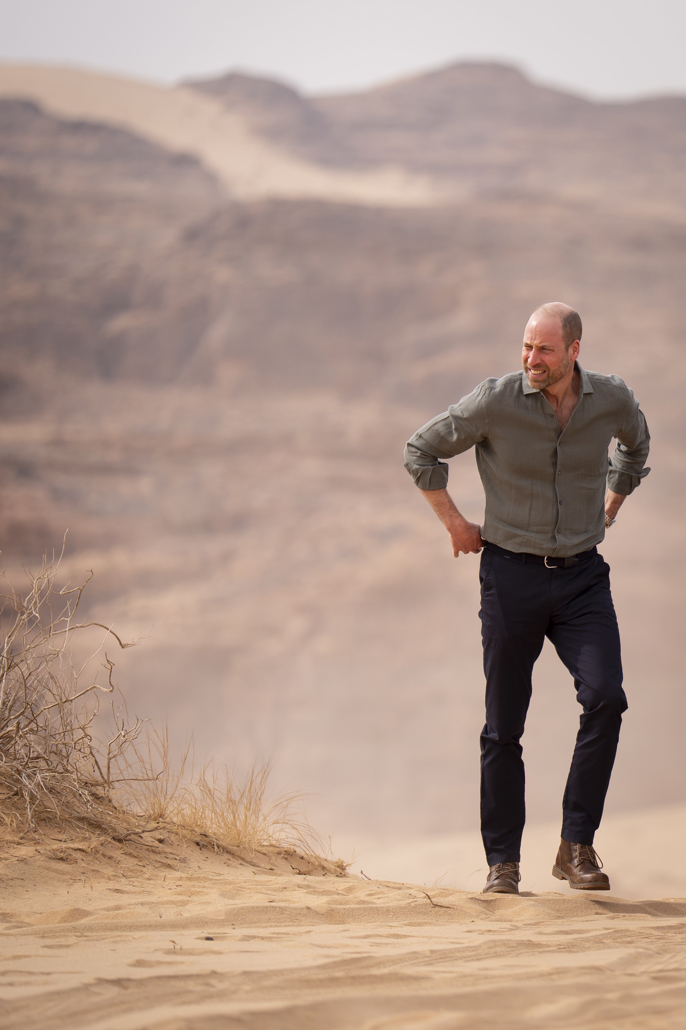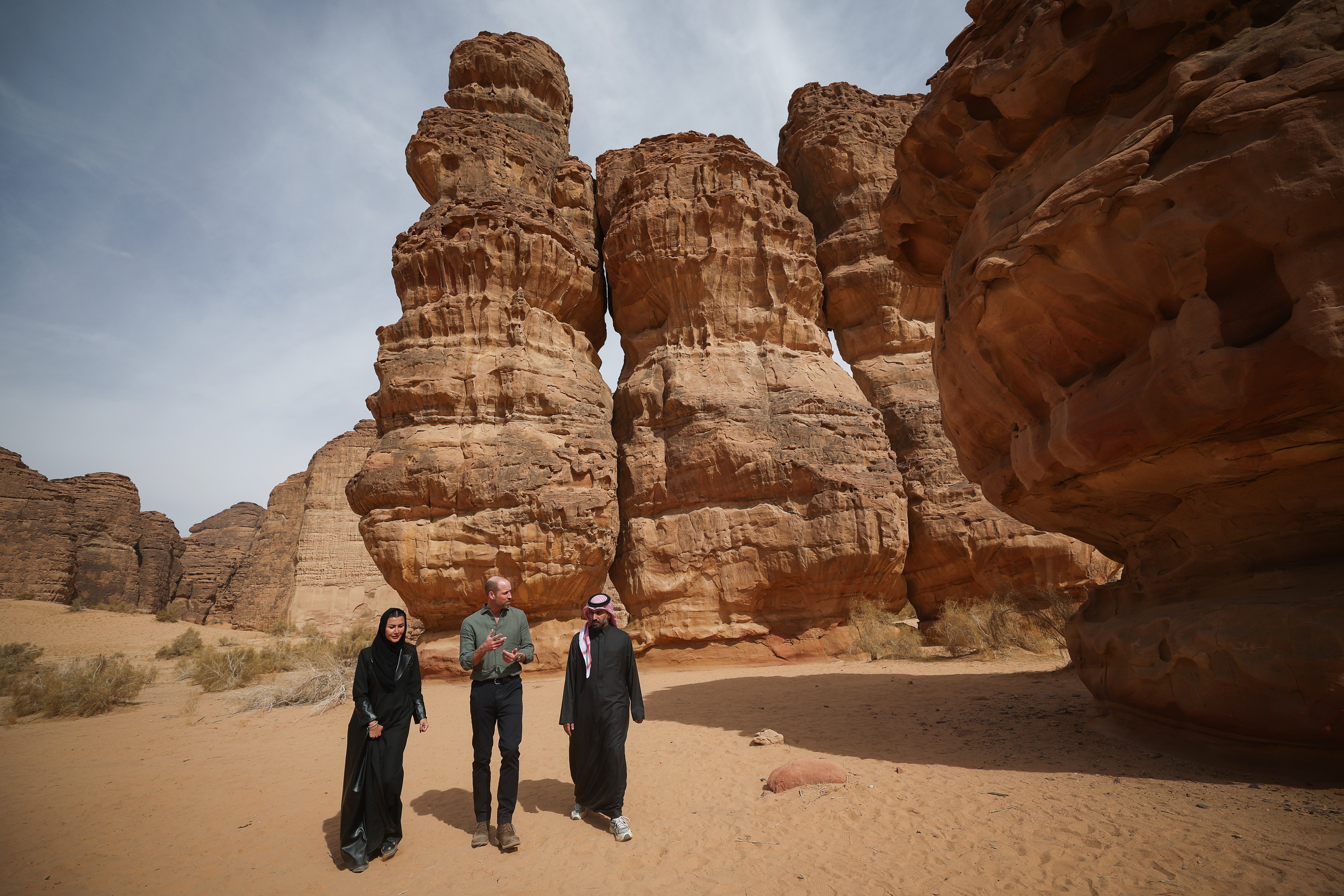 William was driven through towering red sandstone canyons and past sand dunes as he learnt about “exciting” conservation plans to reintroduce native animals including the Arabian leopard.