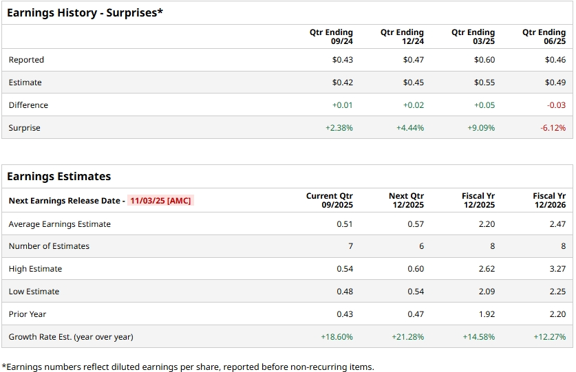 The midstream giant is gearing up to announce its third-quarter results after the markets close on Monday, Nov. 3. Ahead of the event, analysts expect WMB to report an adjusted EPS of $0.51, up a notable 18.6% from $0.43 reported in the year-ago quarter. While the company has surpassed Street’s bottom-line estimates thrice over the past four quarters, it has missed the projections on one other occasion.