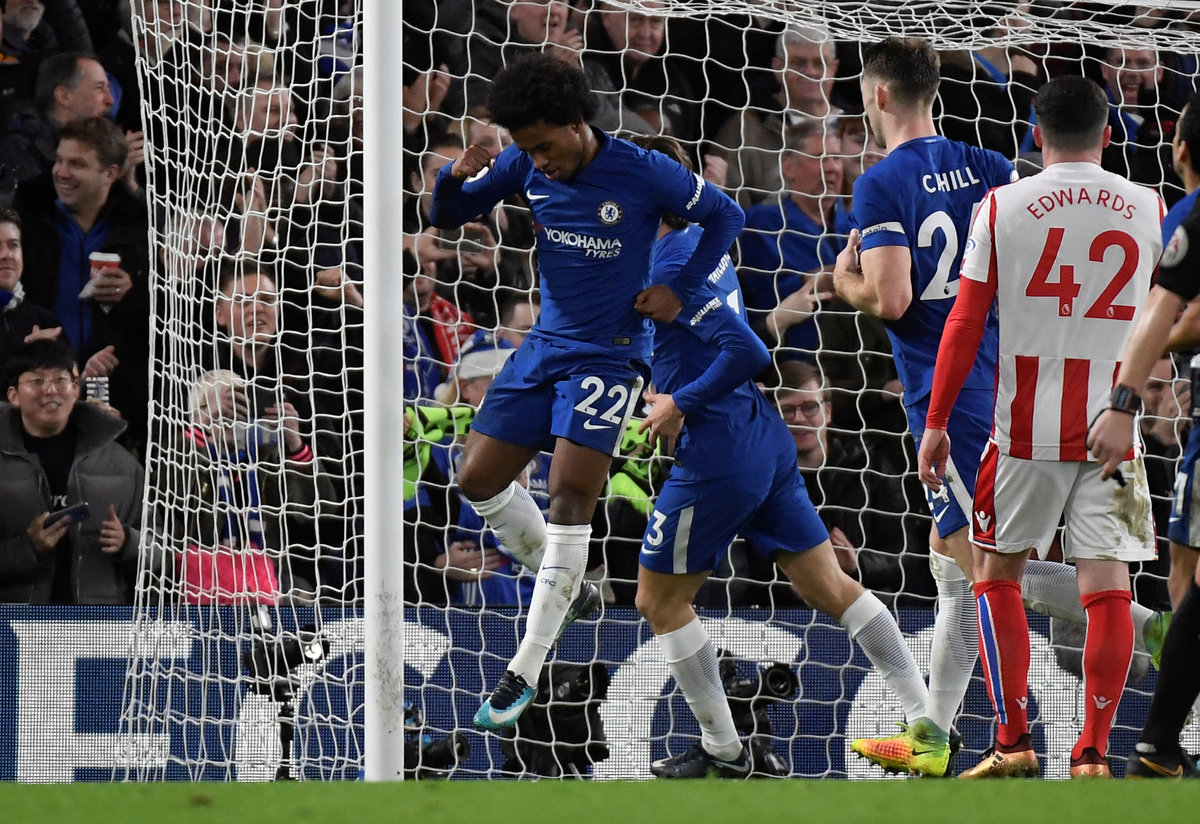 Danny Drinkwater broke Stoke's sprits six minutes later as he rifled a half-volley home from nearly 25 metres to net a spectacular first goal for Chelsea and Willian teed up Pedro for the third in the 23rd minute.