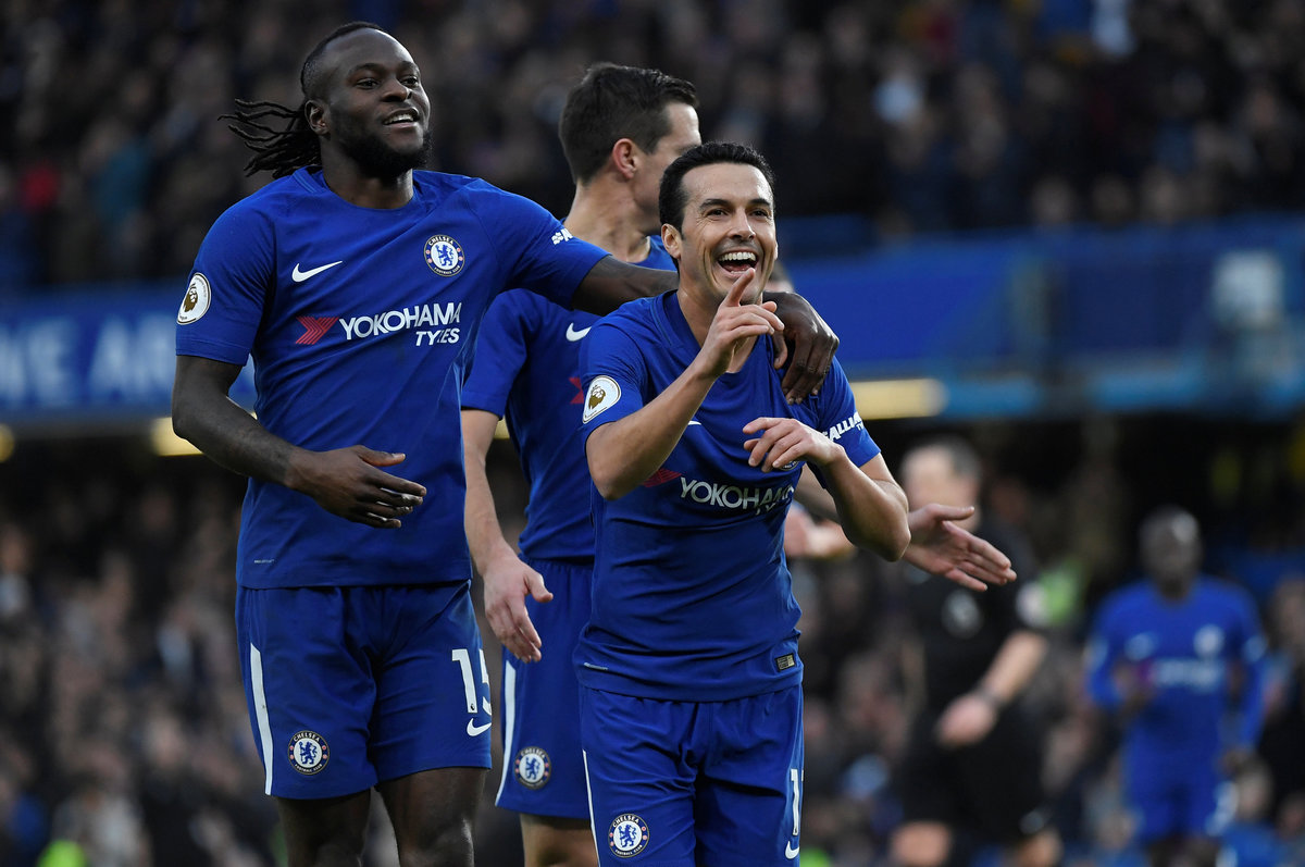 Soccer Football - Premier League - Chelsea vs Stoke City - Stamford Bridge, London, Britain - December 30, 2017 Chelsea's Pedro celebrates scoring their third goal with team mates REUTERS/Toby Melville Soccer Football - Premier League - Chelsea vs Stoke City - Stamford Bridge, London, Britain - December 30, 2017 Chelsea’s Davide Zappacosta celebrates scoring their fifth goal REUTERS/Toby Melville Soccer Football - Premier League - Chelsea vs Stoke City - Stamford Bridge, London, Britain - December 30, 2017 Chelsea’s Alvaro Morata in action with Stoke City's Geoff Cameron and Jack Butland REUTERS/Toby Melville Soccer Football - Premier League - Chelsea vs Stoke City - Stamford Bridge, London, Britain - December 30, 2017 Stoke City manager Mark Hughes REUTERS/Toby Melville