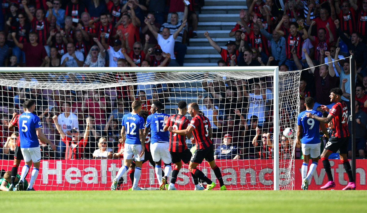 Everton began strongly in the south-coast sunshine with Calvert-Lewin being denied by a brave save from Aaron Ramsdale and Brazilian Richarlison unleashing a dipping pile-driver that thudded against the angle of post and crossbar but minutes later Bournemouth were ahead.
