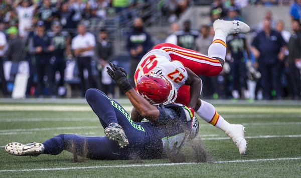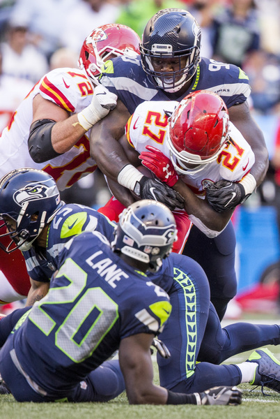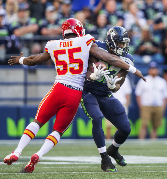 The Seattle defense got help from some well-timed Kansas City dropped passes _ Chiefs quarterback Alex Smith played better than his line of 7 of 17 for 44 yards would indicate _ but veterans Earl Thomas and K.J. Wright in particular looked regular-season ready in leading the Seahawks with four tackles each in the first half.