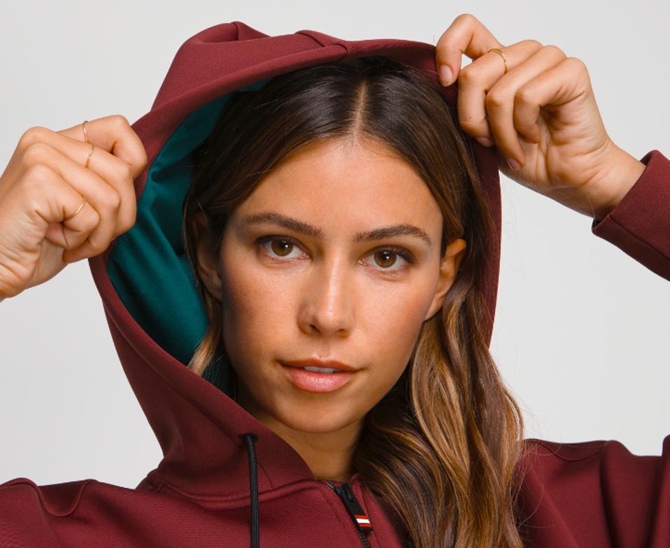 Ties to heritage weave through all the collections. Michaeloff offers an example of cuffs on the sweatshirt. Wilson used a jacquard knit on the brand's original warmups because spandex didn't yet exist, and jacquard was a knitting technique to keep the sleeves in place when pushed up higher on the arm. In the new French terry design, she says the sweatshirt feels modern, but a look at the cuff offers a tiny nod to heritage, using "a beautiful premium technique (jacquard) that reminds us of our past."