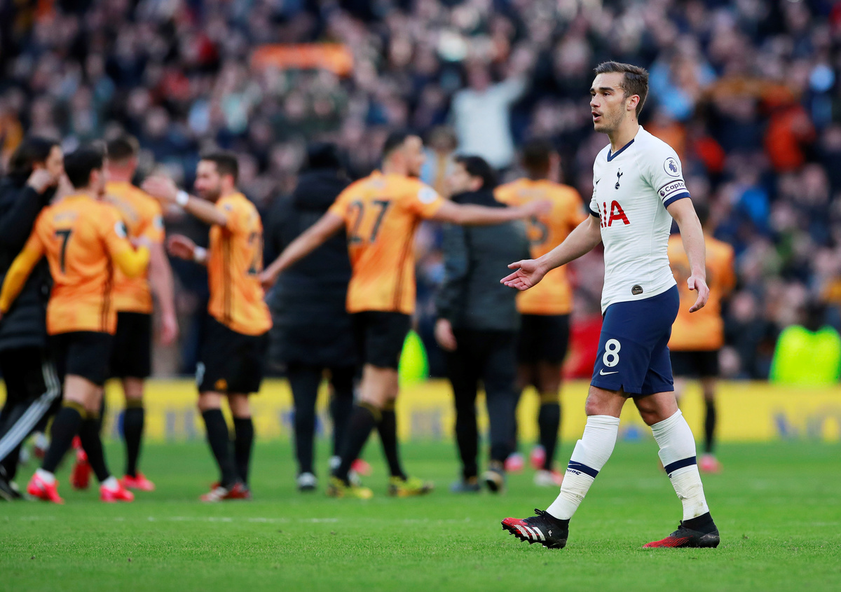 Soccer Football - Premier League - Tottenham Hotspur v Wolverhampton Wanderers - Tottenham Hotspur Stadium, London, Britain - March 1, 2020 Tottenham Hotspur's Harry Winks looks dejected as Wolverhampton Wanderers players celebrate after the match Action Images via Reuters/Andrew Couldridge