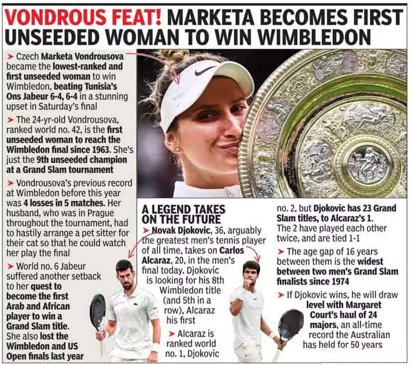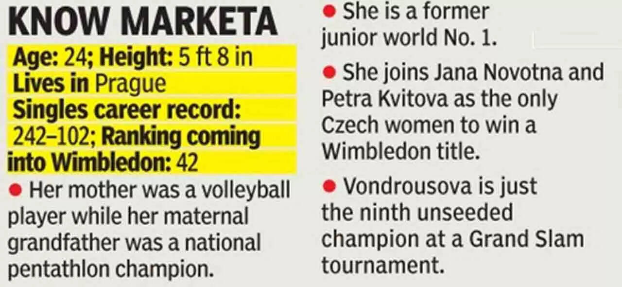 Vondrousova, ranked 42, the first unseeded player to hold aloft the Venus Rosewater Dish, was in London as a tourist 12 months ago. Her left wrist, which had been operated upon twice last year, was in a cast. Unseeded, unheralded and without a sponsor she claimed the Wimbledon title, her first Grand Slam crown.
