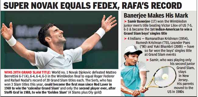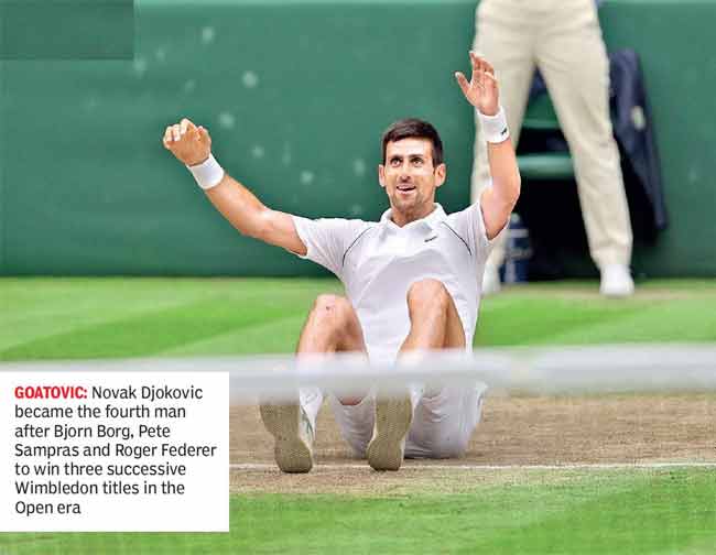 Novak Djokovic lay on his back on Centre Court, savouring a thought. As a seven-year-old, he used discarded metal and silvery tinplate to put together his version of the Gentleman's Singles Trophy. Almost three decades later, having clinched his sixth Wimbledon crown, which gave him a record-equalling 20th Grand Slam title, he had claimed his place at the summit of the sport.