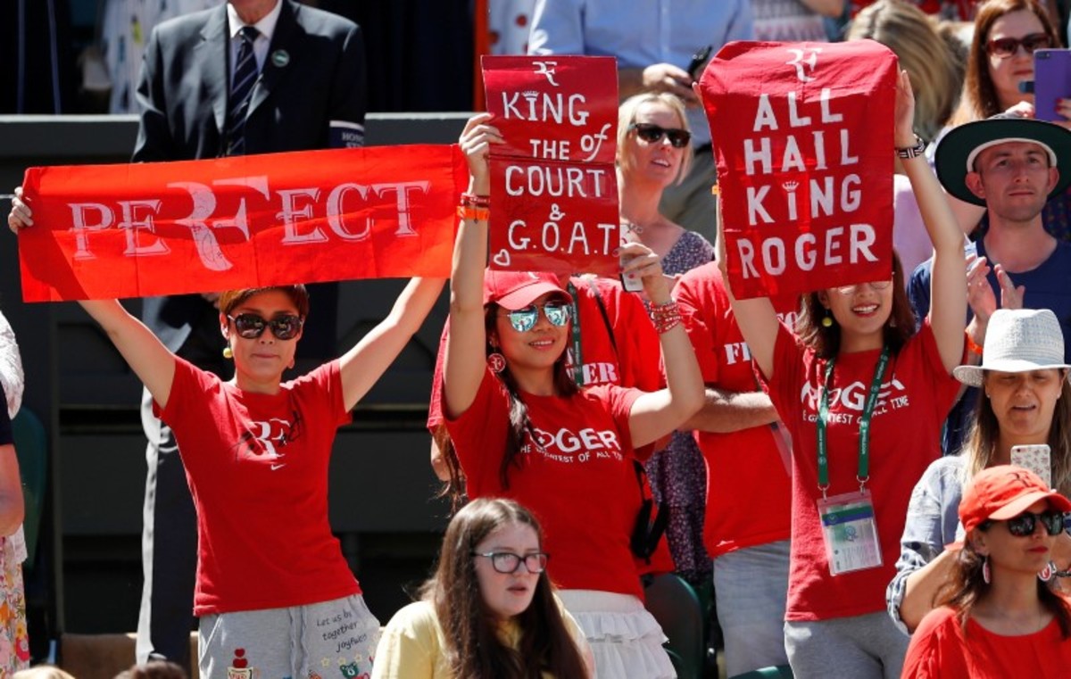 Tennis - Wimbledon - All England Lawn Tennis and Croquet Club, London, Britain - July 2, 2018 Roger Federer fans on Centre Court. REUTERS/Andrew Boyers