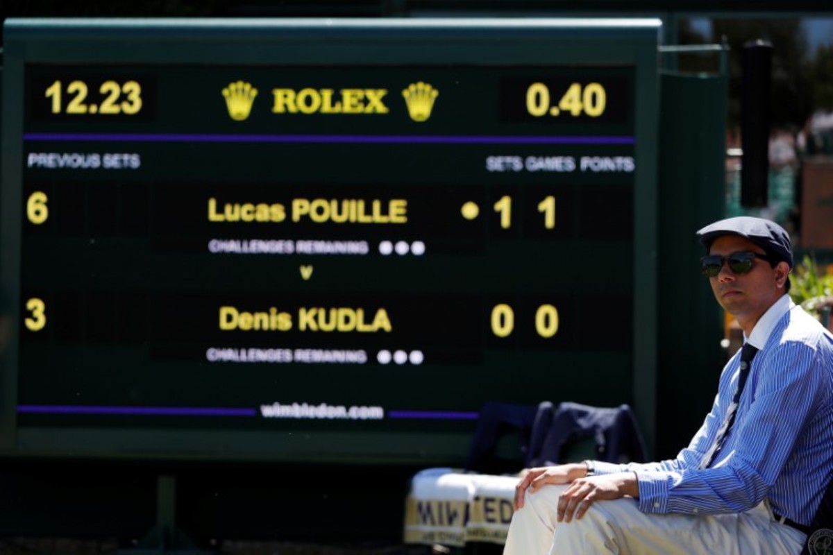 Tennis - Wimbledon - All England Lawn Tennis and Croquet Club, London, Britain - July 2, 2018 Britain's Harriet Dart during the first round match against Czech Republic's Karolina Pliskova REUTERS/Tony O'BrienTennis - Wimbledon - All England Lawn Tennis and Croquet Club, London, Britain - July 2, 2018 Michael Mmoh of the U.S.A. plays a shot during his match against Luxembourg's Gilles Muller. REUTERS/Toby MelvilleTennis - Wimbledon - All England Lawn Tennis and Croquet Club, London, Britain - July 2, 2018 France's Lucas Pouille in action during the first round match against Denis Kudla of the U.S. REUTERS/Andrew CouldridgeTennis - Wimbledon - All England Lawn Tennis and Croquet Club, London, Britain - July 2, 2018 Luxembourg's Gilles Muller in action against Michael Mnoh of the U.S.A. REUTERS/Toby MelvilleTennis - Wimbledon - All England Lawn Tennis and Croquet Club, London, Britain - July 2, 2018 France's Lucas Pouille in action during the first round match against Denis Kudla of the U.S. REUTERS/Andrew CouldridgeTennis - Wimbledon - All England Lawn Tennis and Croquet Club, London, Britain - July 2, 2018 France's Lucas Pouille in action during the first round match against Denis Kudla of the U.S. REUTERS/Andrew CouldridgeTennis - Wimbledon - All England Lawn Tennis and Croquet Club, London, Britain - July 2, 2018 Match officials eat lunch. REUTERS/Toby MelvilleTennis - Wimbledon - All England Lawn Tennis and Croquet Club, London, Britain - July 2, 2018 Ball girl holds umbrella. REUTERS/Toby MelvilleTennis - Wimbledon - All England Lawn Tennis and Croquet Club, London, Britain - July 2, 2018 Spectators drink champagne on Centre Court. REUTERS/Andrew BoyersTennis - Wimbledon Preview - All England Lawn Tennis and Croquet Club, London, Britain - July 2, 2018 Order of play is adjusted. REUTERS/Peter NichollsTennis - Wimbledon - All England Lawn Tennis and Croquet Club, London, Britain - July 2, 2018 Spectator takes pictures with his mobile phone. REUTERS/Peter NichollsTennis - Wimbledon - All England Lawn Tennis and Croquet Club, London, Britain - July 2, 2018 Spectators drink champagne on Centre Court. REUTERS/Andrew BoyersTennis - Wimbledon - All England Lawn Tennis and Croquet Club, London, Britain - July 2, 2018 General view of seat umpires. REUTERS/Toby MelvilleTennis - Wimbledon - All England Lawn Tennis and Croquet Club, London, Britain - July 2, 2018 Spectators arrive. REUTERS/Toby Melville