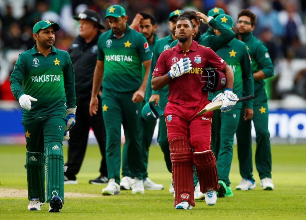 Cricket - ICC Cricket World Cup - West Indies v Pakistan - Trent Bridge, Nottingham, Britain - May 31, 2019 West Indies' Nicholas Pooran walks off the pitch after hitting the winning runs as Pakistan's Sarfaraz Ahmed and team mates look dejected Action Images via Reuters/Jason Cairnduff