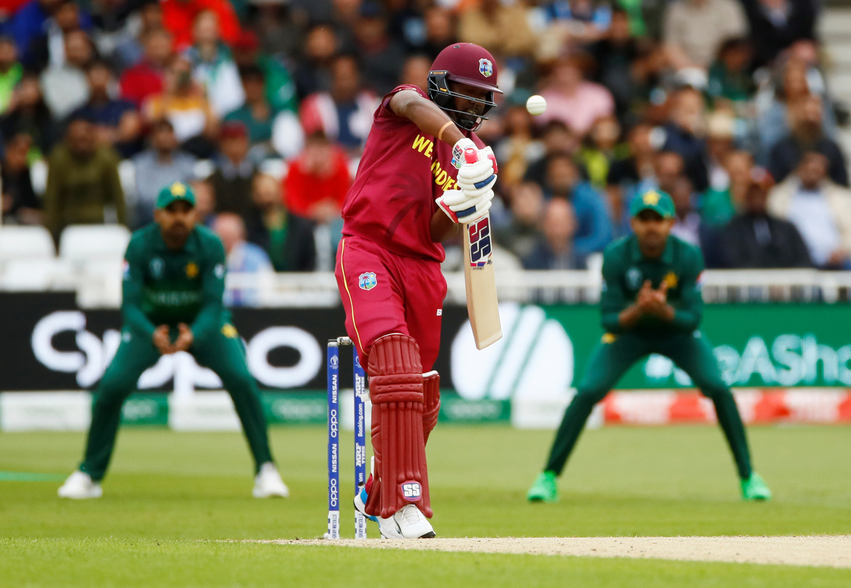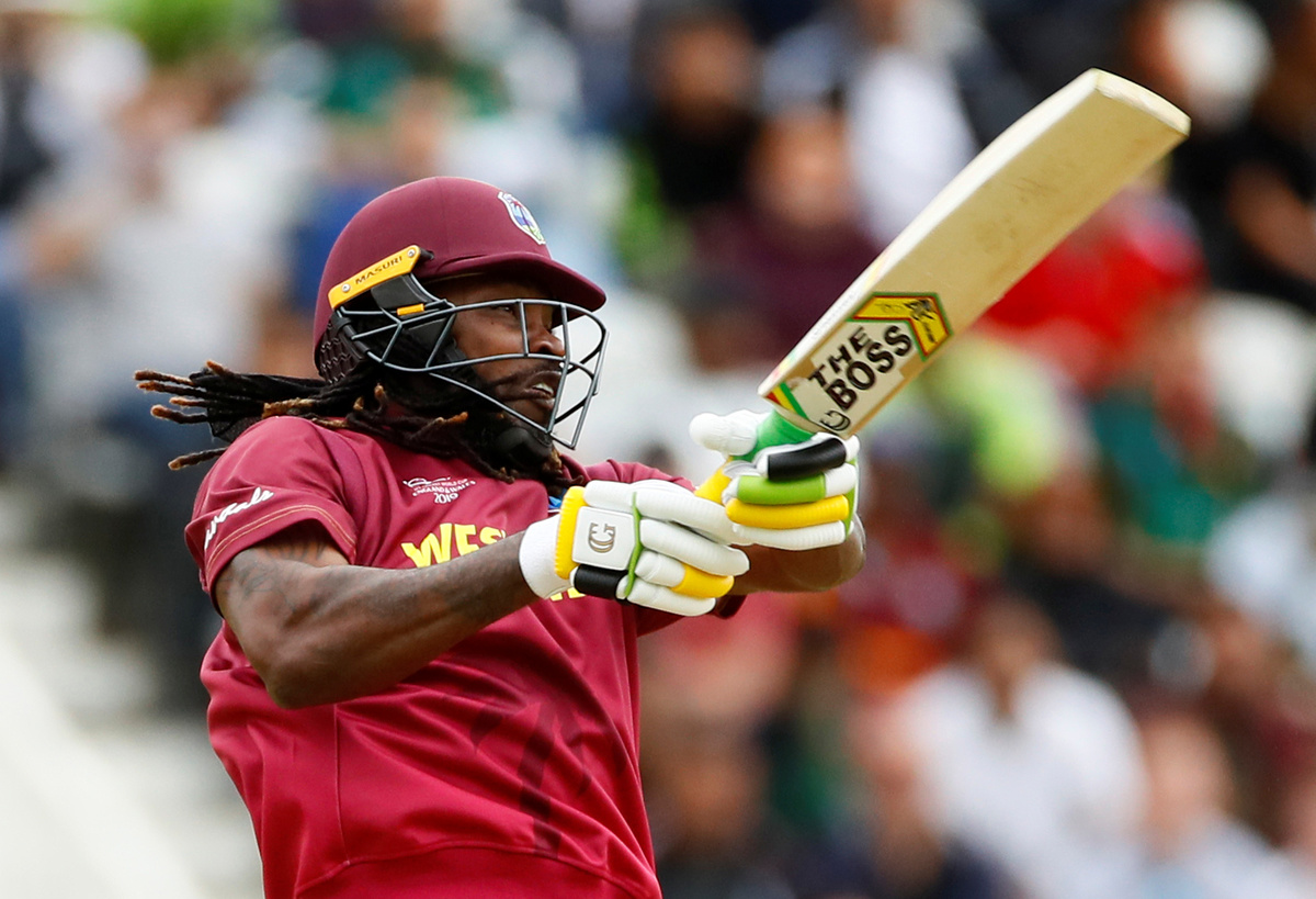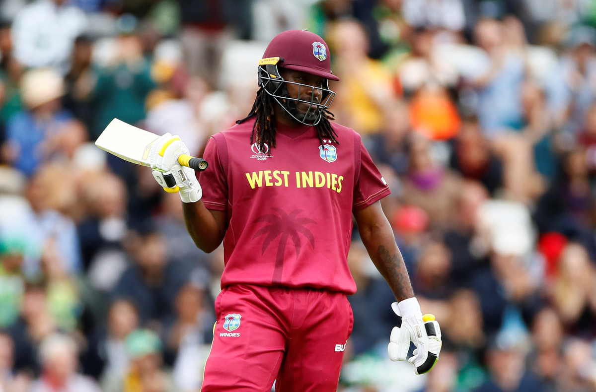 Cricket - ICC Cricket World Cup - West Indies v Pakistan - Trent Bridge, Nottingham, Britain - May 31, 2019 West Indies' Chris Gayle in action Action Images via Reuters/Jason CairnduffCricket - ICC Cricket World Cup - West Indies v Pakistan - Trent Bridge, Nottingham, Britain - May 31, 2019 West Indies' Chris Gayle celebrates reaching a half century Action Images via Reuters/Jason CairnduffCricket - ICC Cricket World Cup - West Indies v Pakistan - Trent Bridge, Nottingham, Britain - May 31, 2019 West Indies' Nicholas Pooran hits a four Action Images via Reuters/Jason CairnduffCricket - ICC Cricket World Cup - West Indies v Pakistan - Trent Bridge, Nottingham, Britain - May 31, 2019 West Indies' Darren Bravo is dismissed after being caught out by Pakistan's Babar Azam off the bowling of Mohammad Amir Action Images via Reuters/Jason CairnduffCricket - ICC Cricket World Cup - West Indies v Pakistan - Trent Bridge, Nottingham, Britain - May 31, 2019 Pakistan's Mohammad Hafeez celebrates making the catch to dismiss West Indies' Shai Hope off the bowling of Mohammad Amir Action Images via Reuters/Jason Cairnduff