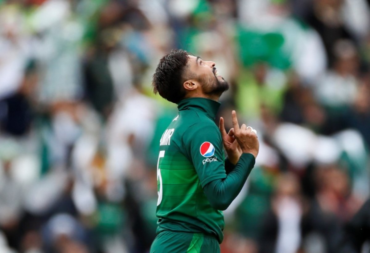 Cricket - ICC Cricket World Cup - West Indies v Pakistan - Trent Bridge, Nottingham, Britain - May 31, 2019 Pakistan's Mohammad Amir celebrates taking the wicket of West Indies' Chris Gayle Action Images via Reuters/Jason Cairnduff