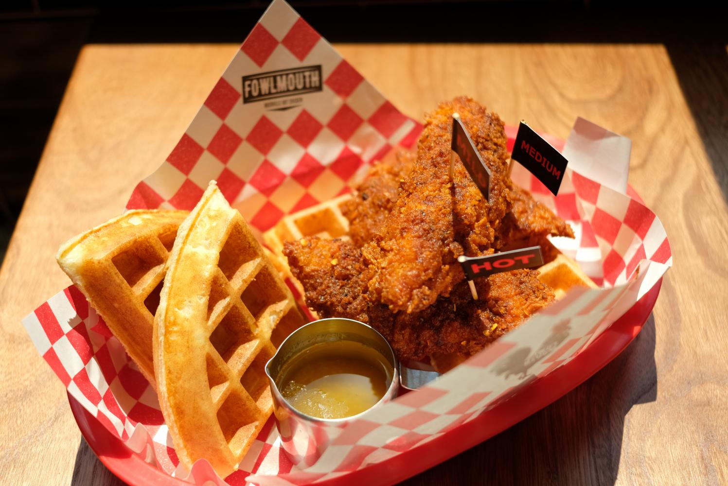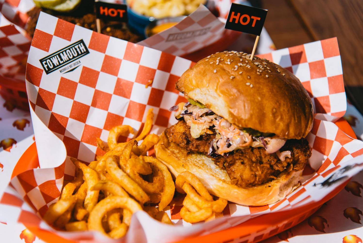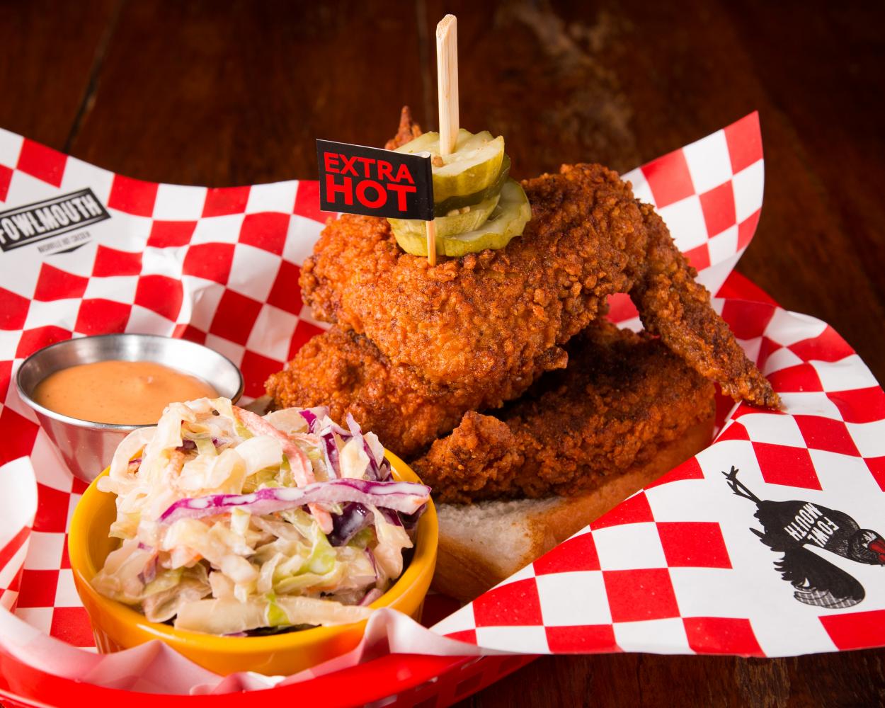 Fowlmouth's menu simply centres on its signature fried chicken. Diners can have the fowl with side dishes as a combo meal, or as the main part of sandwiches, tacos and nachos.