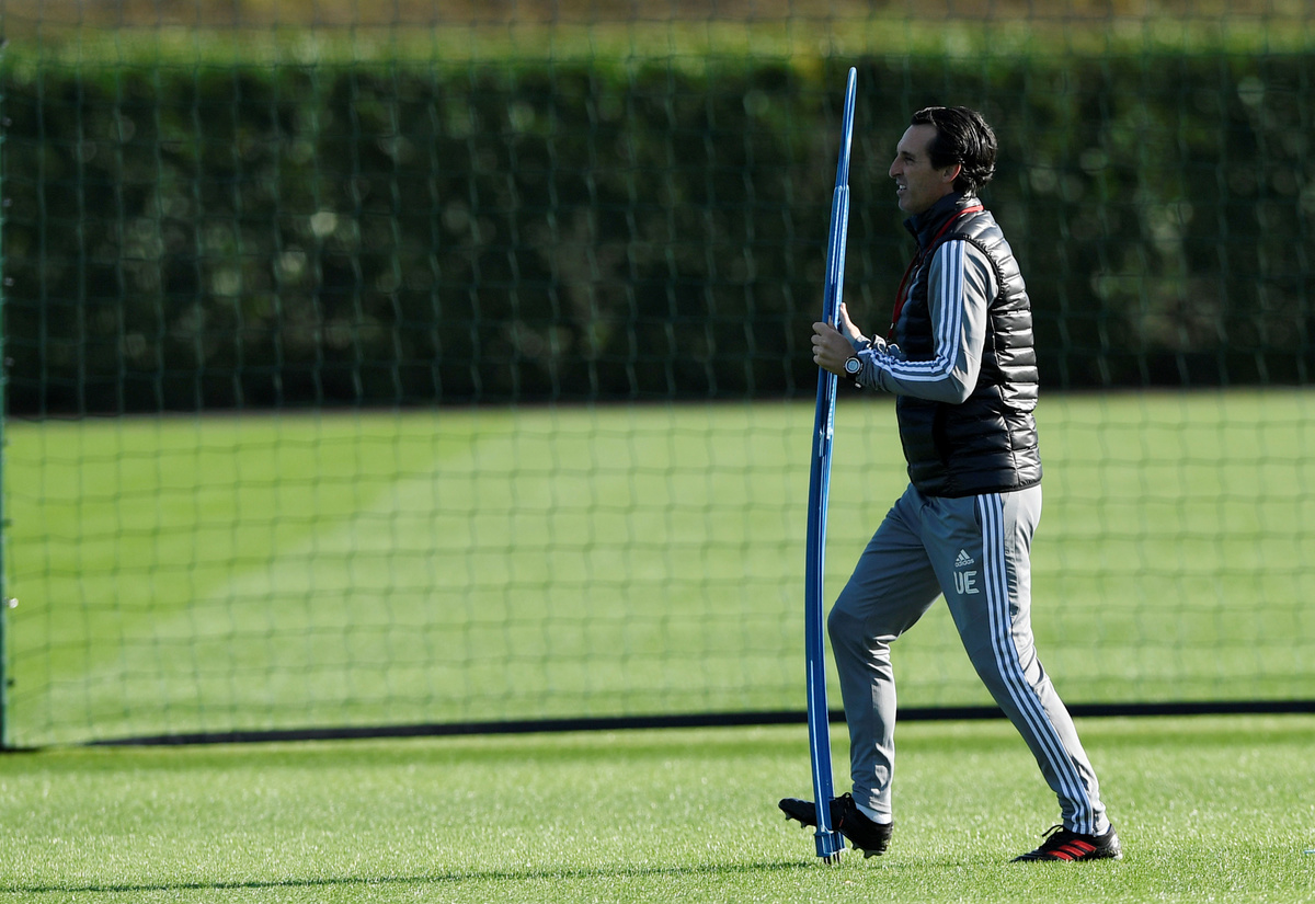 Soccer Football - Europa League - Arsenal Training - Arsenal Training Centre, St Albans, Britain - October 2, 2019 Arsenal manager Unai Emery during training Action Images via Reuters/Tony O'Brien