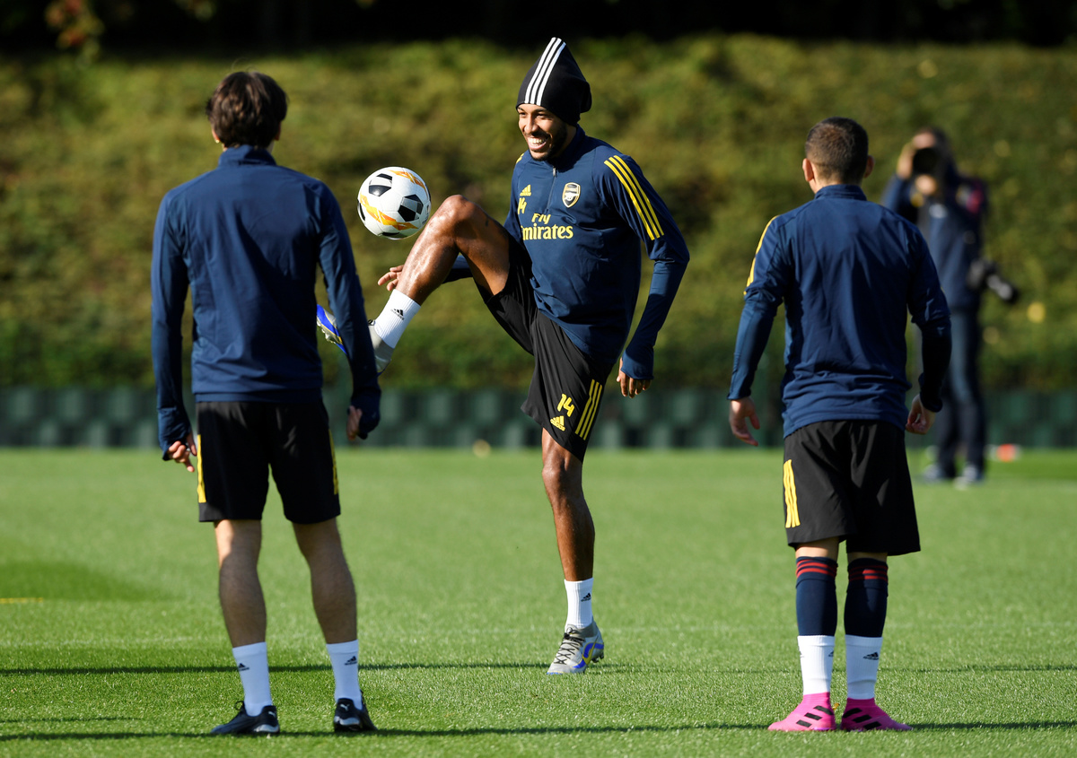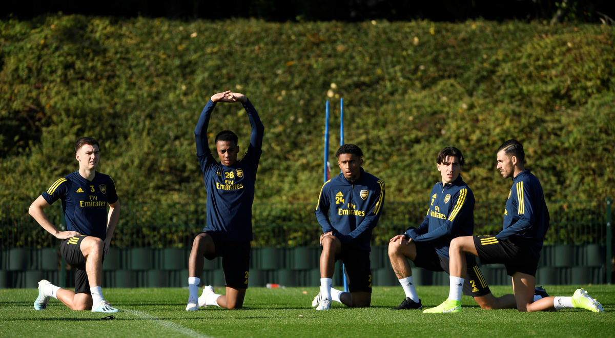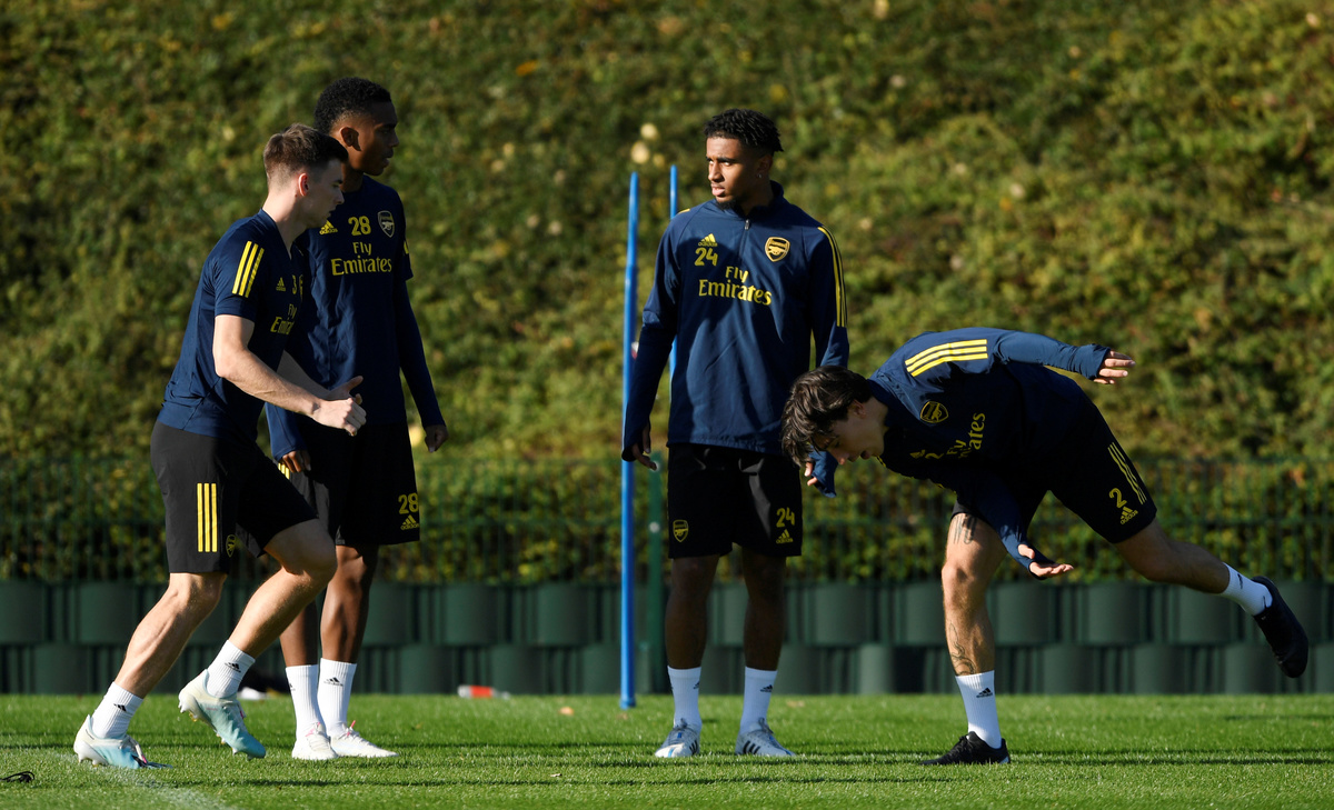 Soccer Football - Europa League - Arsenal Training - Arsenal Training Centre, St Albans, Britain - October 2, 2019 Arsenal's Emile Smith Rowe during training Action Images via Reuters/Tony O'BrienSoccer Football - Europa League - Arsenal Training - Arsenal Training Centre, St Albans, Britain - October 2, 2019 Arsenal's Rob Holding, Calum Chambers, David Luiz and Ainsley Maitland-Niles during training Action Images via Reuters/Tony O'BrienSoccer Football - Europa League - Arsenal Training - Arsenal Training Centre, St Albans, Britain - October 2, 2019 Arsenal's Sokratis Papastathopoulos and Granit Xhaka during training Action Images via Reuters/Tony O'BrienSoccer Football - Europa League - Arsenal Training - Arsenal Training Centre, St Albans, Britain - October 2, 2019 Arsenal's Dani Ceballos and Sokratis Papastathopoulos during training Action Images via Reuters/Tony O'BrienSoccer Football - Europa League - Arsenal Training - Arsenal Training Centre, St Albans, Britain - October 2, 2019 Arsenal's Sead Kolasinac during training Action Images via Reuters/Tony O'BrienSoccer Football - Europa League - Arsenal Training - Arsenal Training Centre, St Albans, Britain - October 2, 2019 Arsenal's Pierre-Emerick Aubameyang during training Action Images via Reuters/Tony O'BrienSoccer Football - Europa League - Arsenal Training - Arsenal Training Centre, St Albans, Britain - October 2, 2019 Arsenal's Sead Kolasinac, Mesut Ozil and Shkodran Mustafi during training Action Images via Reuters/Tony O'BrienSoccer Football - Europa League - Arsenal Training - Arsenal Training Centre, St Albans, Britain - October 2, 2019 Arsenal's David Luiz during training Action Images via Reuters/Tony O'BrienSoccer Football - Europa League - Arsenal Training - Arsenal Training Centre, St Albans, Britain - October 2, 2019 Arsenal's Sokratis Papastathopoulos and David Luiz during training Action Images via Reuters/Tony O'BrienSoccer Football - Europa League - Arsenal Training - Arsenal Training Centre, St Albans, Britain - October 2, 2019 Arsenal's Pierre-Emerick Aubameyang during training Action Images via Reuters/Tony O'Brien