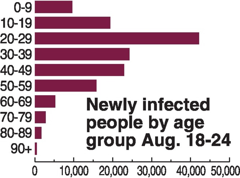 Accordingly, the rate has risen for people in their 20s and 30s, from 18.9% as of Aug. 1 to 43.7% as of Thursday.